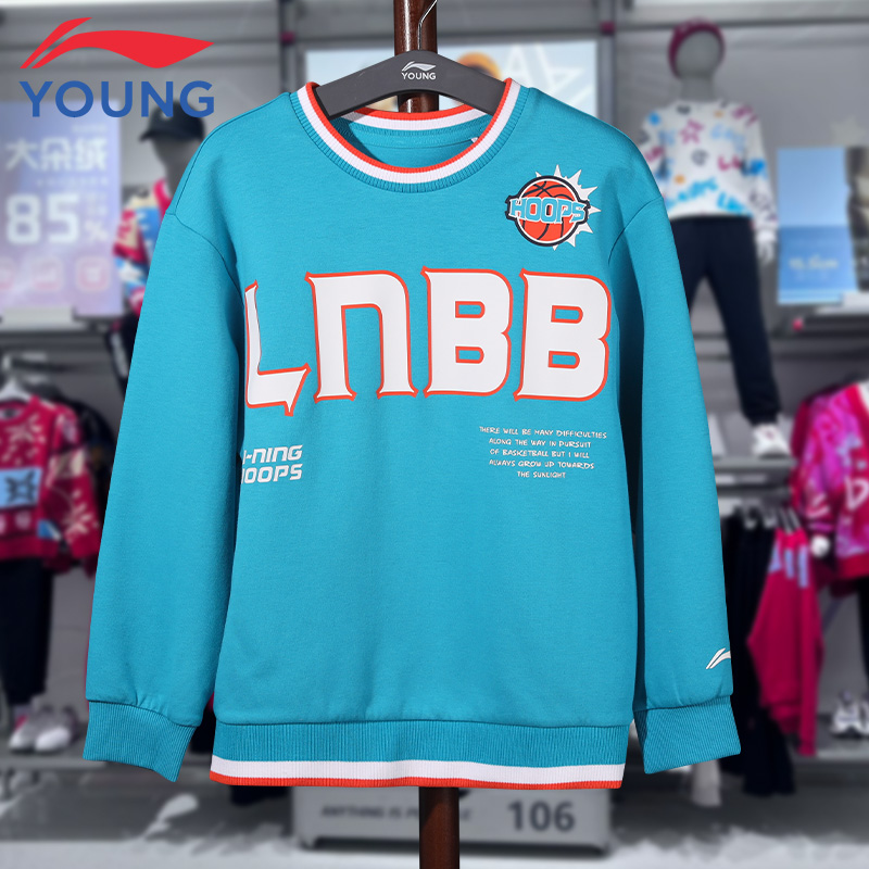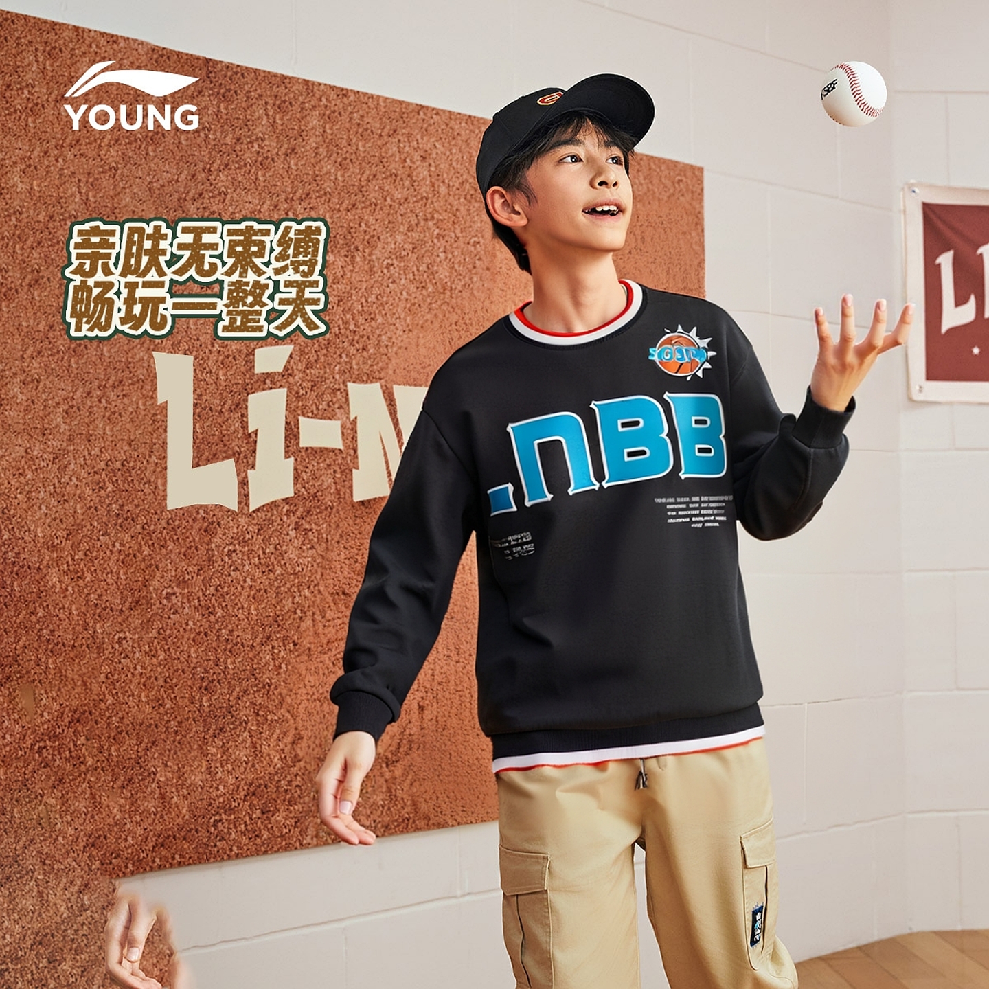 李宁童装儿童卫衣25秋季新款男童装圆领宽松棉质休闲上衣 YWDU053