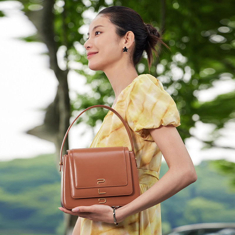保兰德PLD体制内真皮托纳波尼包棕色斜挎小方包女高级感手提包包