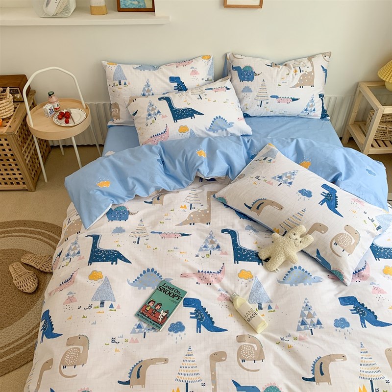 极速儿童卡通男g孩蓝色全棉小恐龙三件套四件套1.2m1.5m上下床被