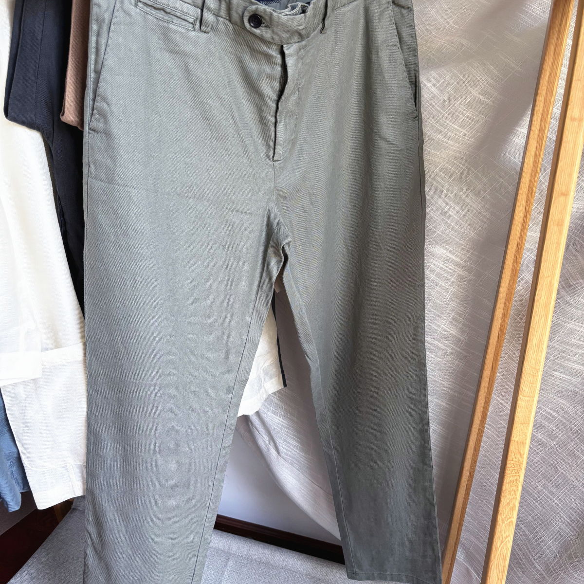 瑕疵处理!S系列41%亚麻39夏季纯色薄款小直筒男式商务休闲裤长裤