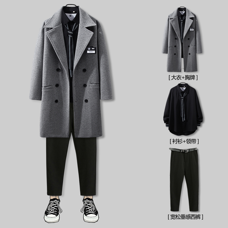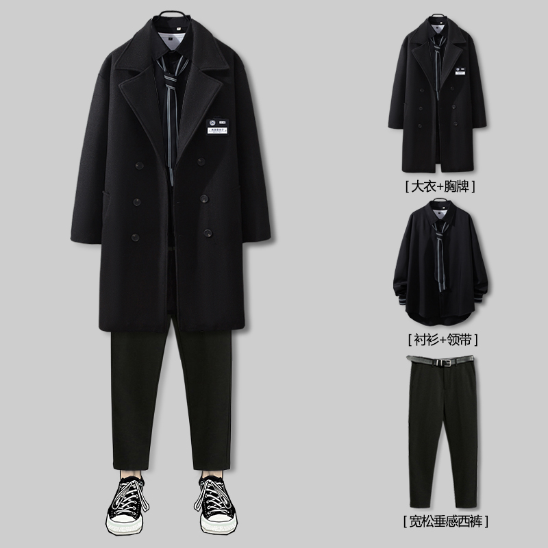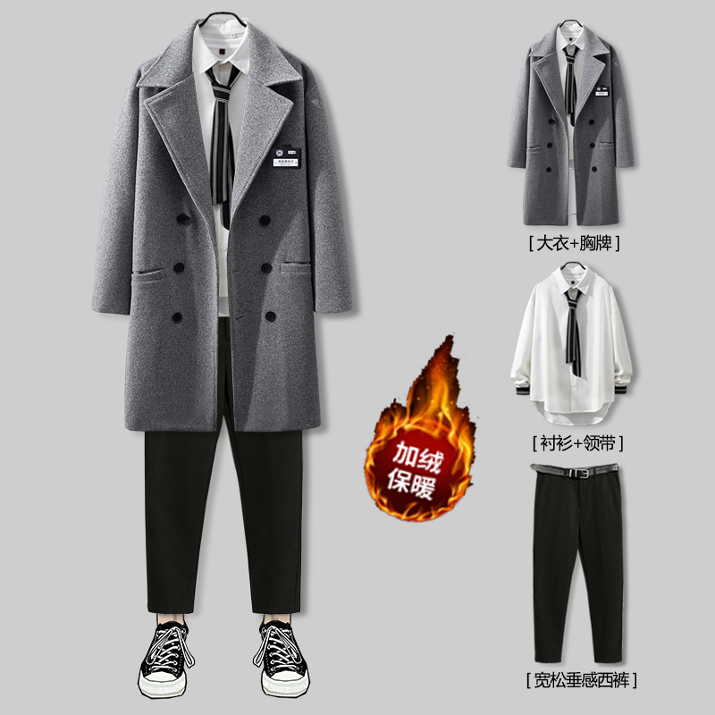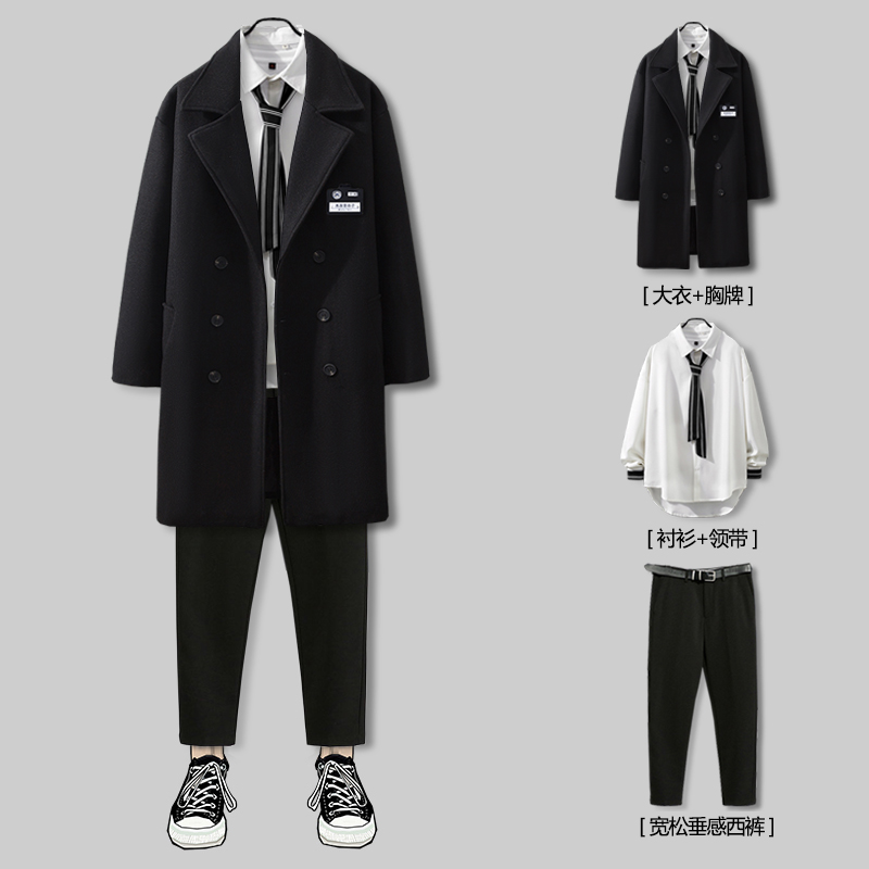 原创JK/DK制服毛呢大衣男双排扣学院风外套上衣秋冬中长款风衣男