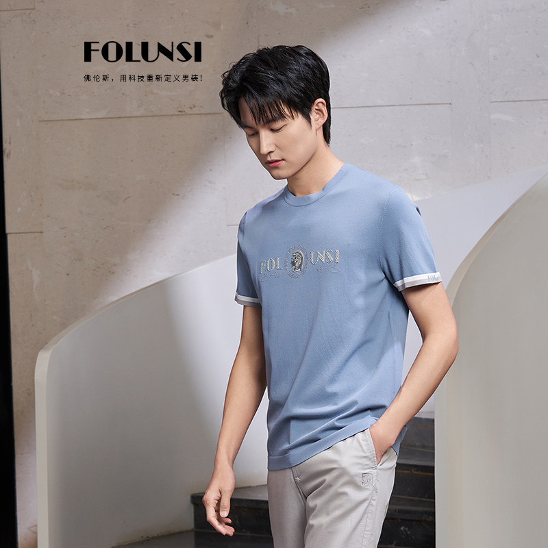 佛伦斯FOLUNSI男装男士t恤短袖男夏季男装商务休闲圆领透气半袖