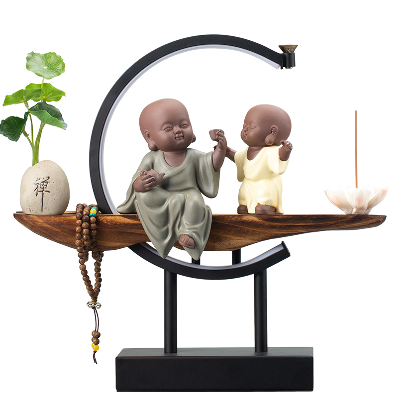 创意灯圈陶瓷小和尚倒流香炉禅意人物家居摆件客R厅玄关装饰熏香