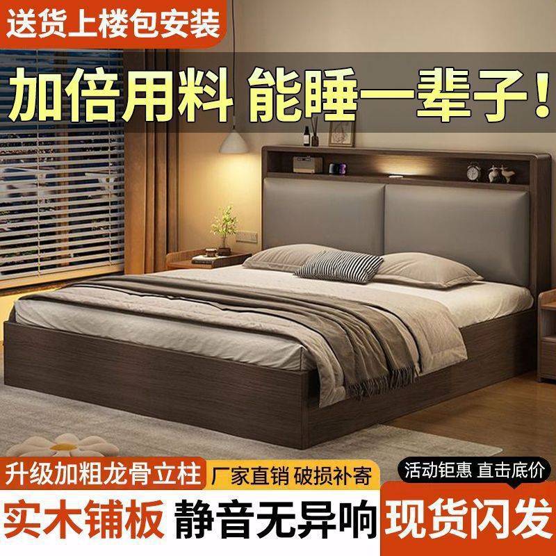 实木床双人1.8x2米主卧大床家用1.5米小户型出租房1.2m储物单人床