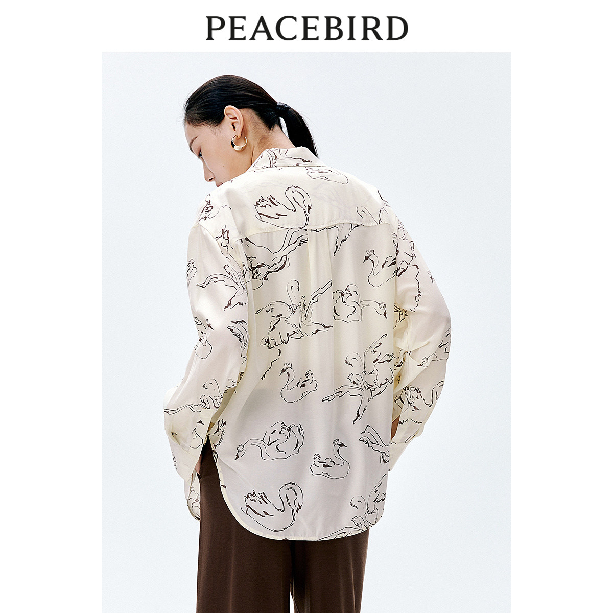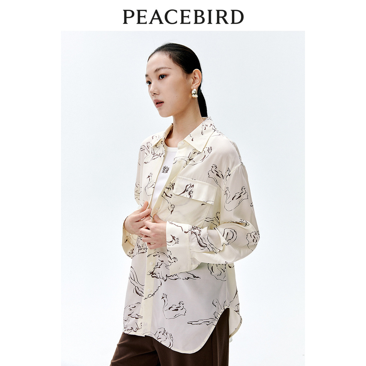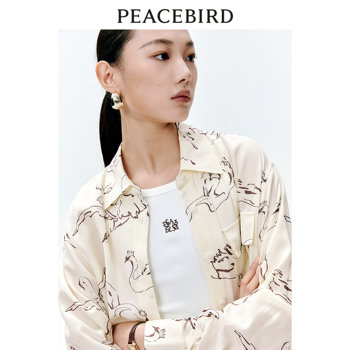 太平鸟女装春季气质印花宽松中性上衣衬衫女A1CAE1502