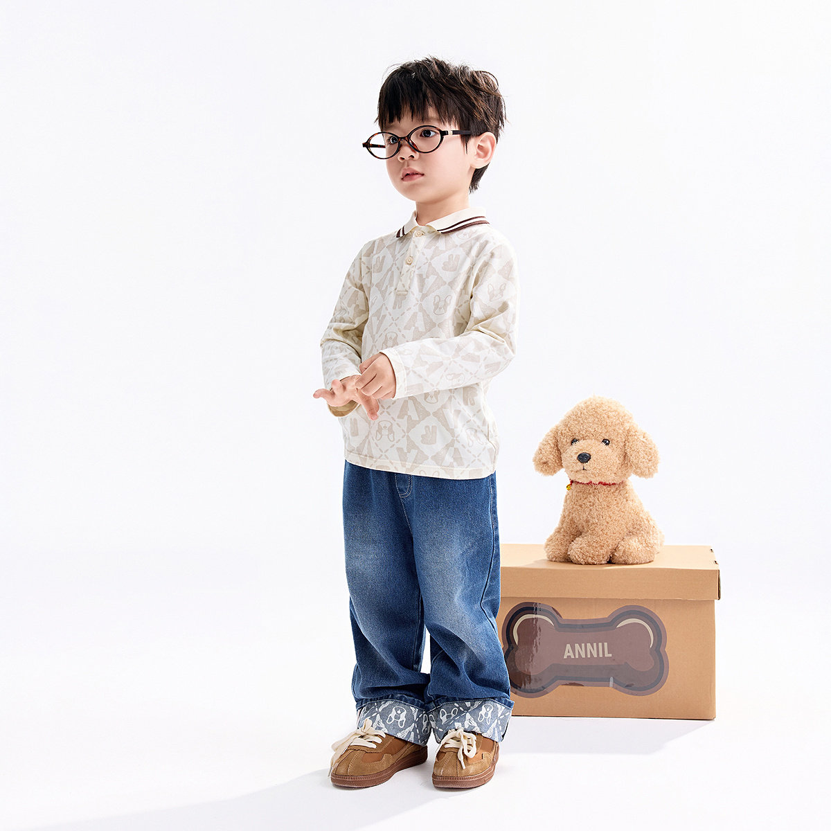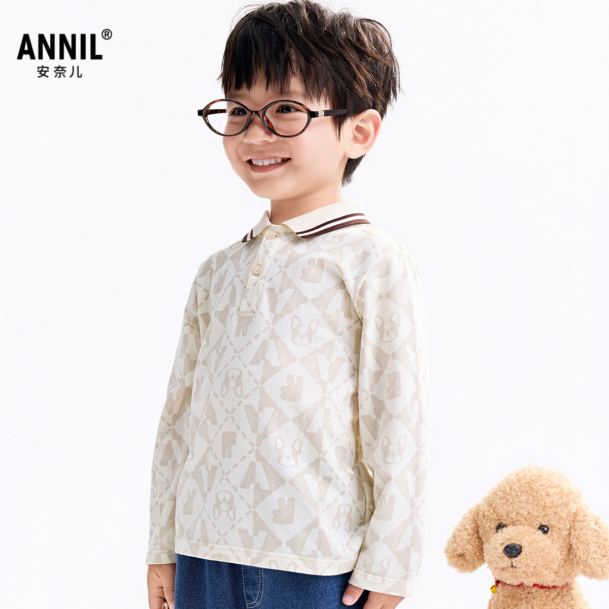 【商场同款】安奈儿童装男童翻领长袖POLO衫秋新款XB531171