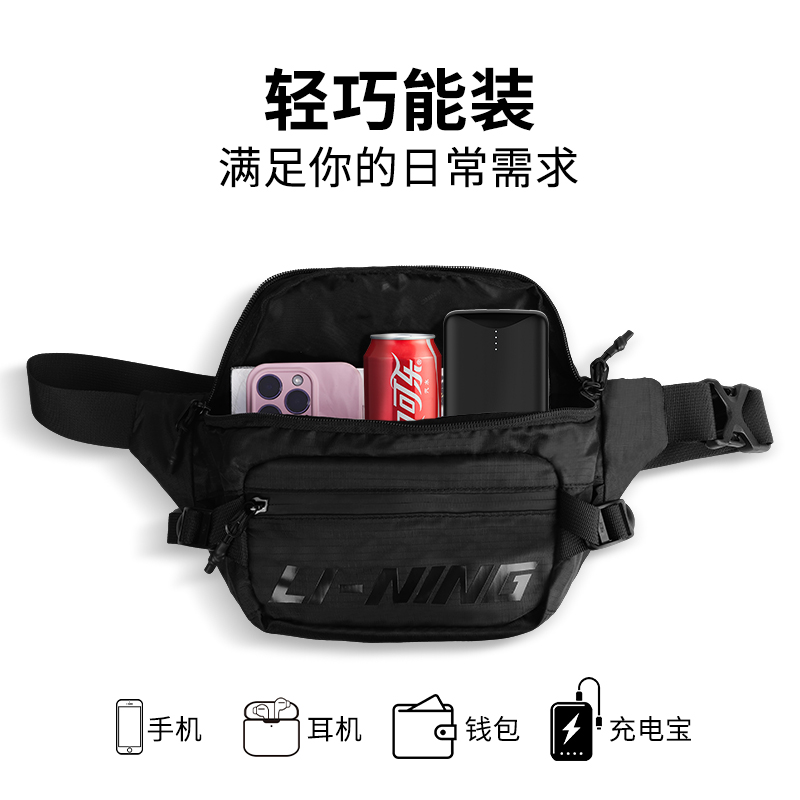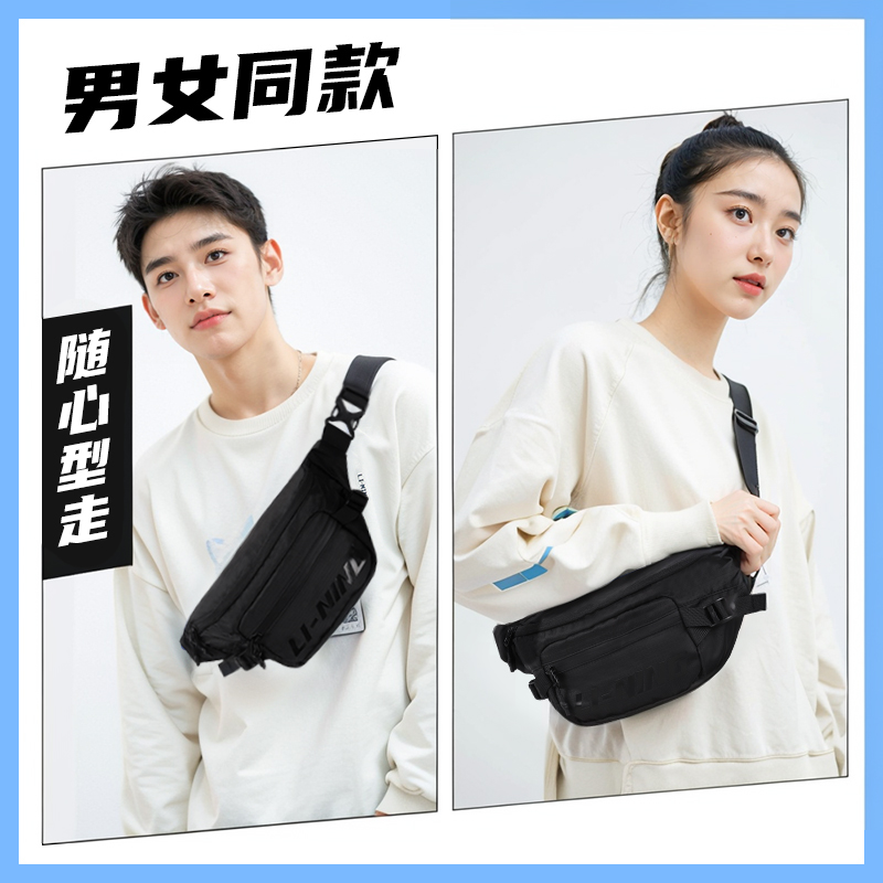 李宁腰包女士大容量帆布单肩包胸包通勤挎包骑行斜挎包男款斜肩包