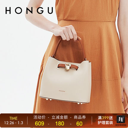 红谷女包包新款包包牛皮大包简约百搭单肩包斜挎包大容量水桶包包