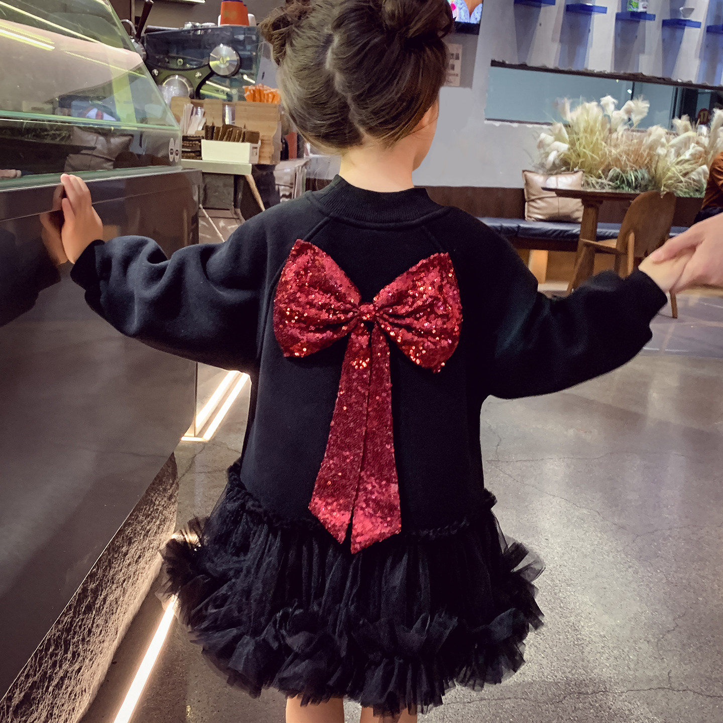 小女孩网纱加绒长袖卫衣蓬蓬裙子
