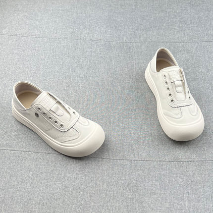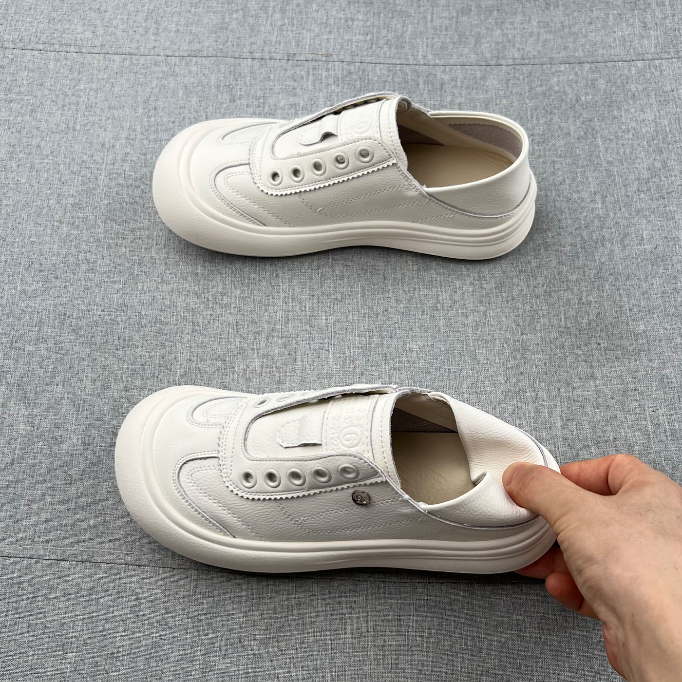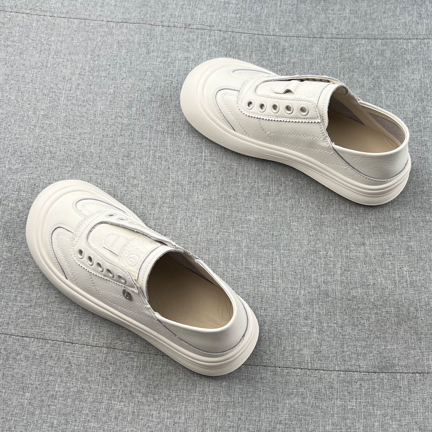 真皮一脚蹬厚底小白鞋女板鞋2025年早秋新款软面防滑底牛皮休闲鞋