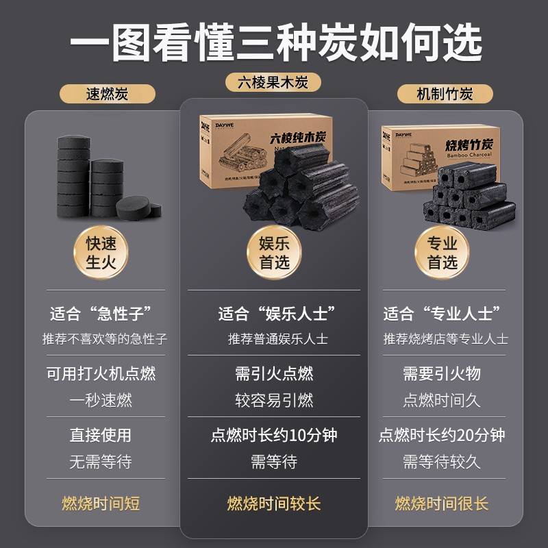 木炭烧烤碳无烟家用果木炭碳烤炉速燃炭竹炭专用室内炭块碳块