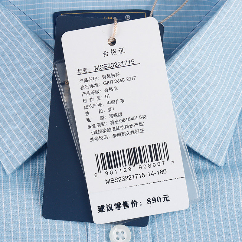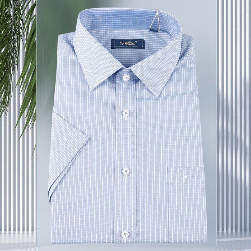 金利来男装短袖衬衫夏季格子标准含棉商务正装MSS23221715-14/55