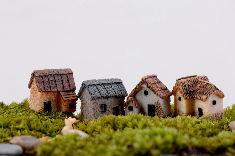 卡通风茅草屋单门树脂园艺小摆件