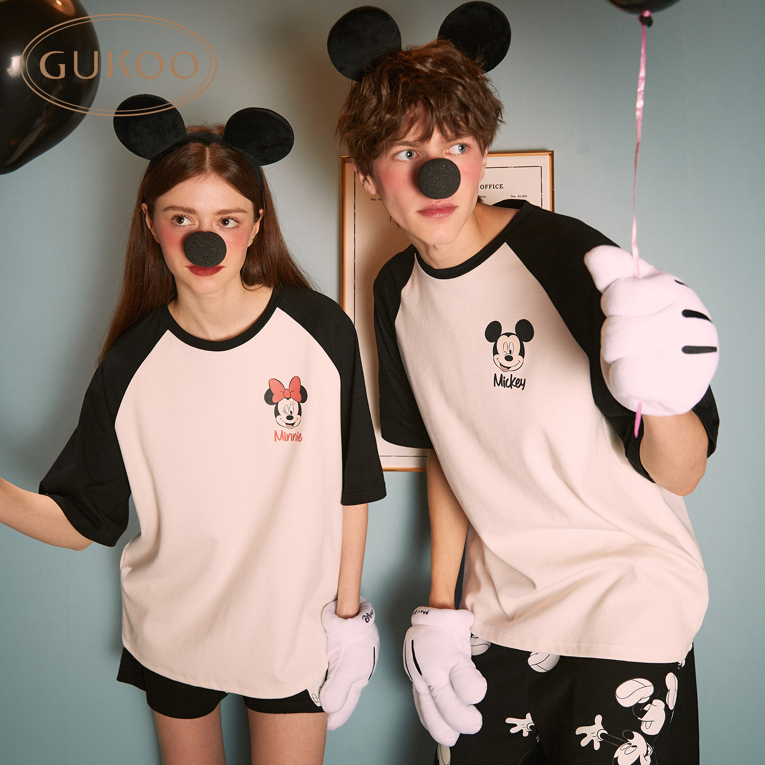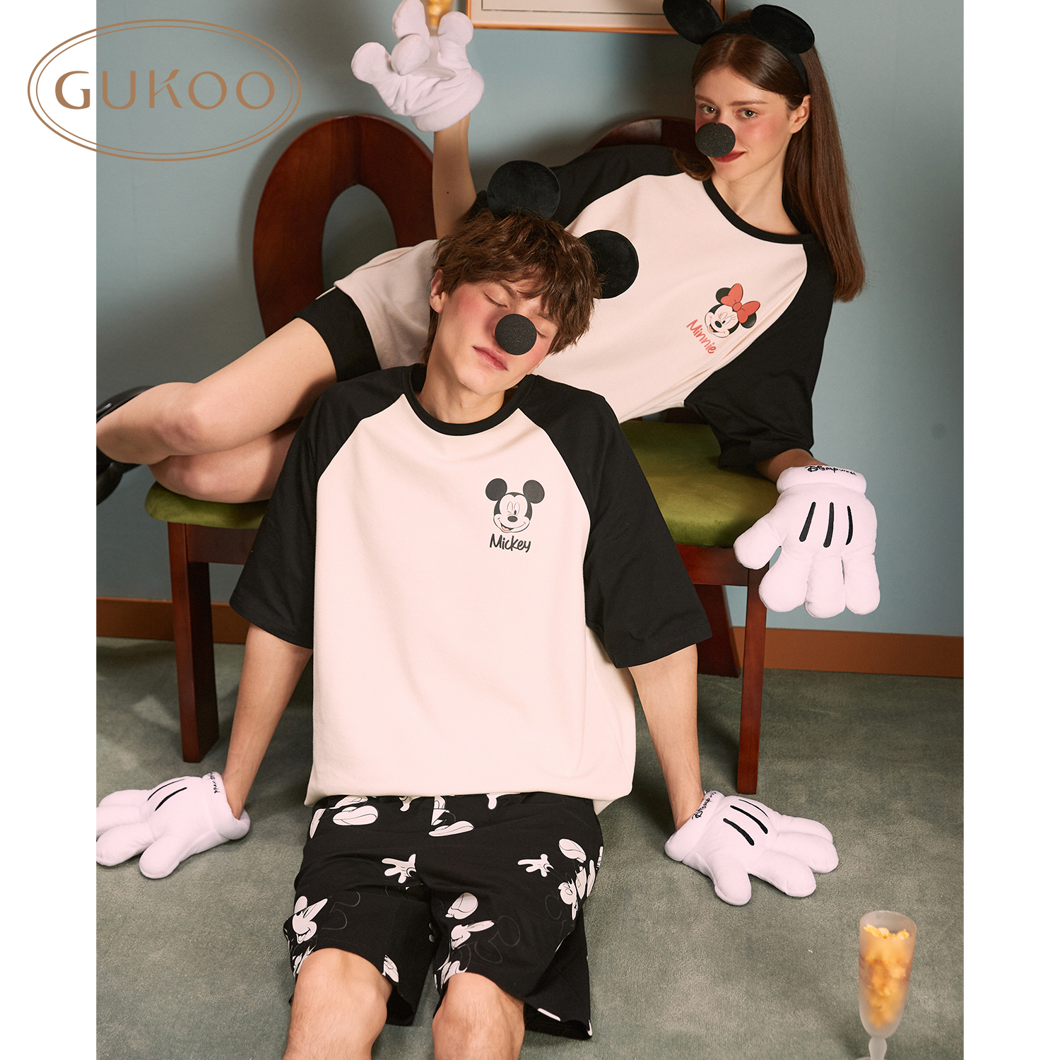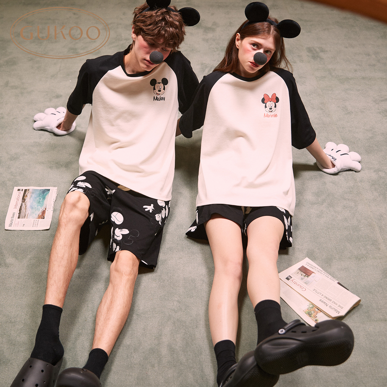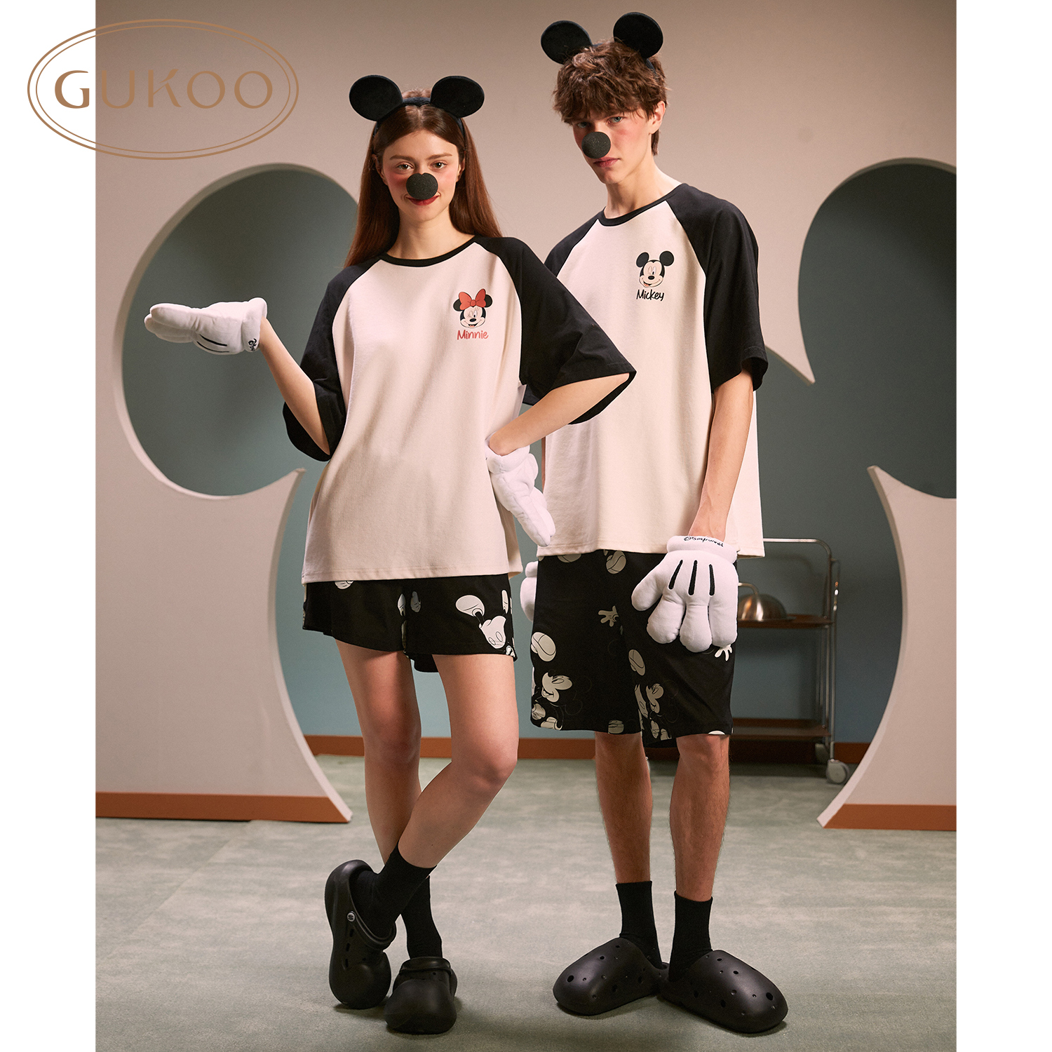 Gukoo/果壳睡衣女夏款迪士尼系列短袖情侣家居服套装