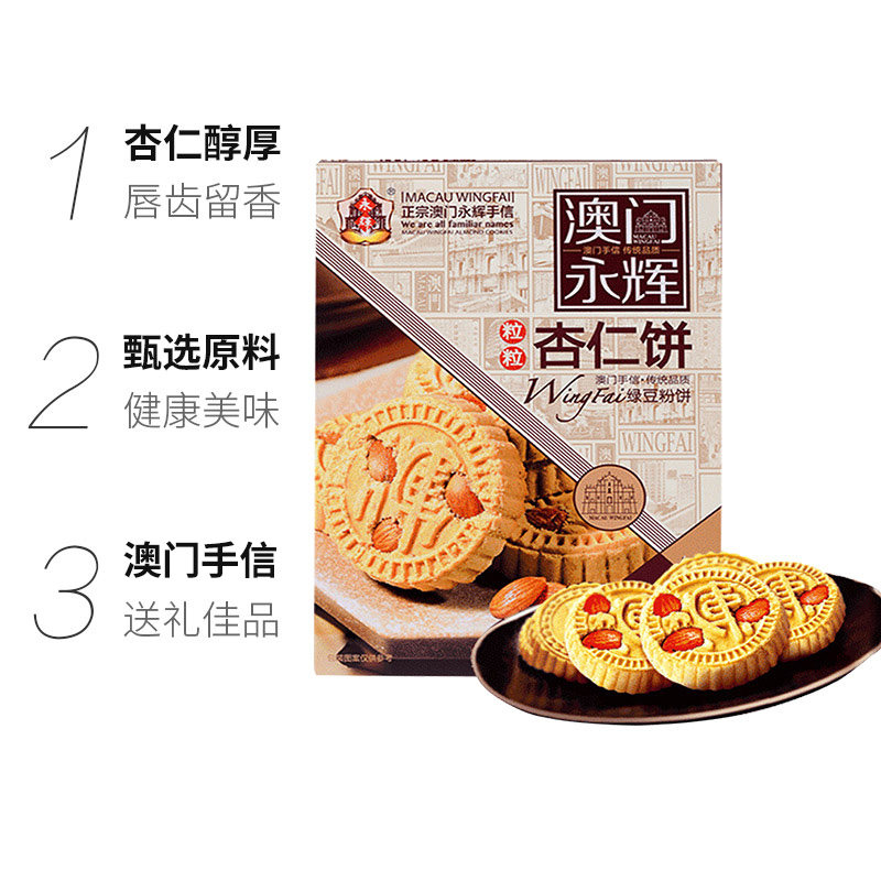 永辉绿豆粉糕杏仁饼238g澳门特产出游糕点下午茶糕点点心杏仁多