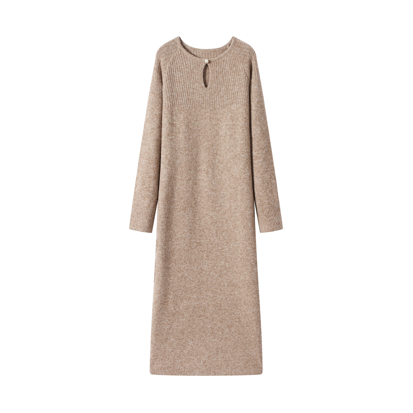 2025秋冬新款圆领遮肚子毛衣打底裙宽松慵懒风中长款针织连衣裙