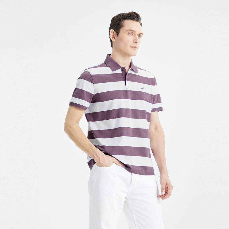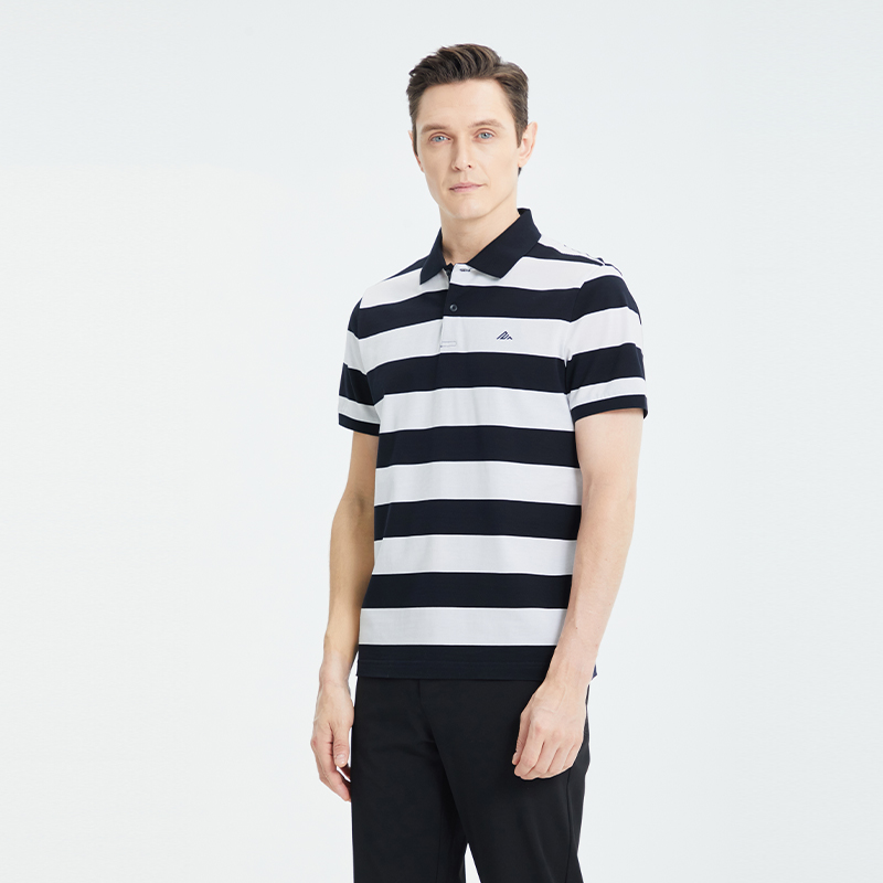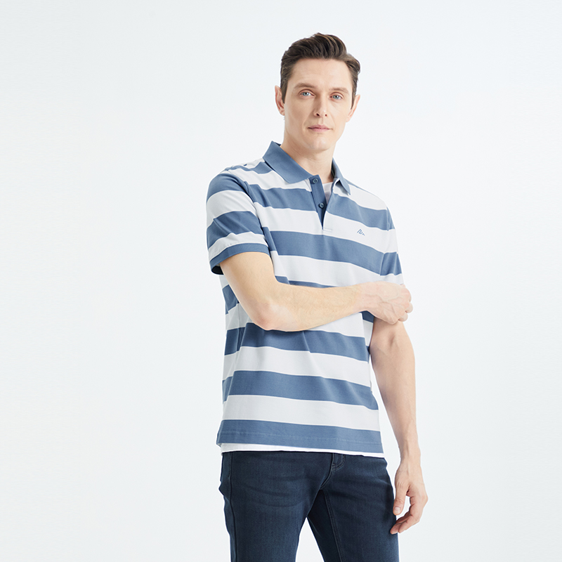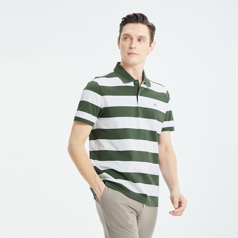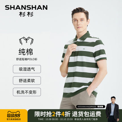 SHANSHAN杉杉官方休闲条纹polo衫男2025新款夏季纯棉翻领短袖t恤