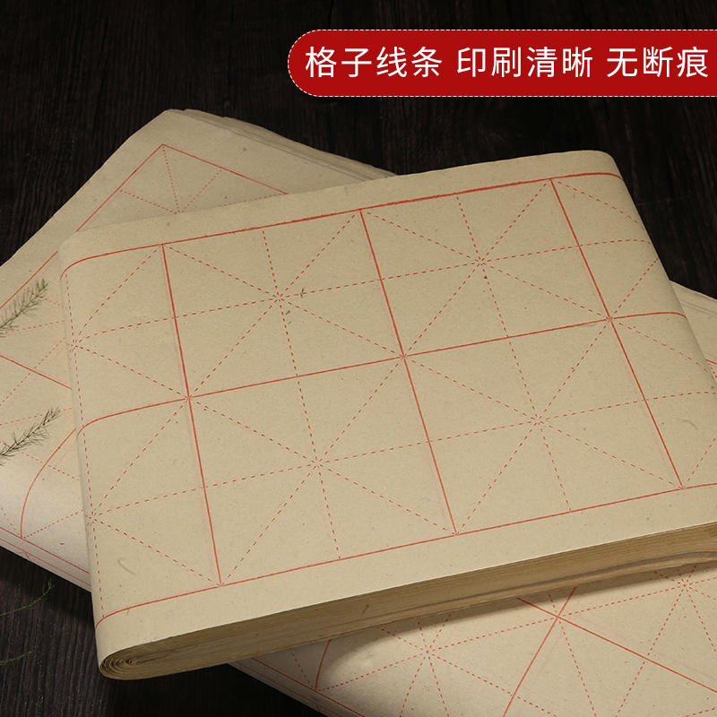 毛边纸书法专用 练字米字格半生半熟宣纸初学者毛笔书法专用纸仿古毛边纸28格12格纯手工元书纸批发