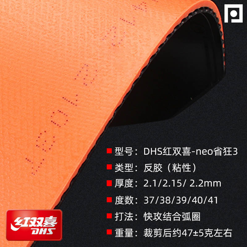 DHS红双喜NEO省狂3尼傲乒乓球拍胶皮狂飚三套胶狂飙3反胶马龙37°