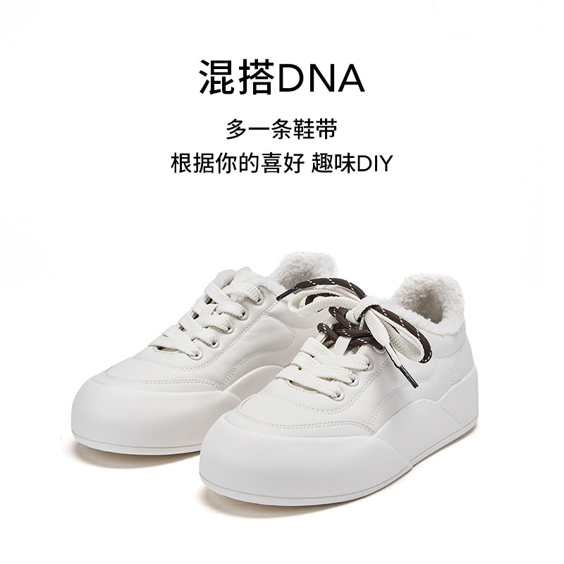 热风厚底小白鞋女2025年冬季新款百搭增高休闲鞋保暖加绒板鞋女鞋