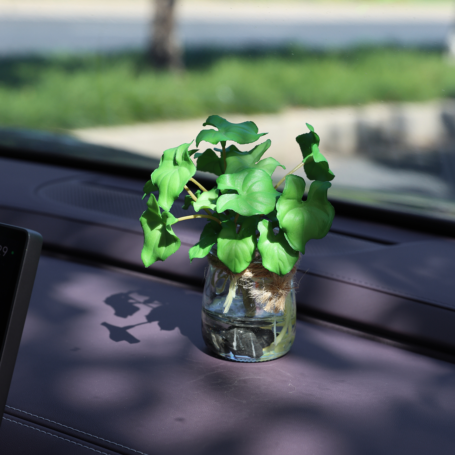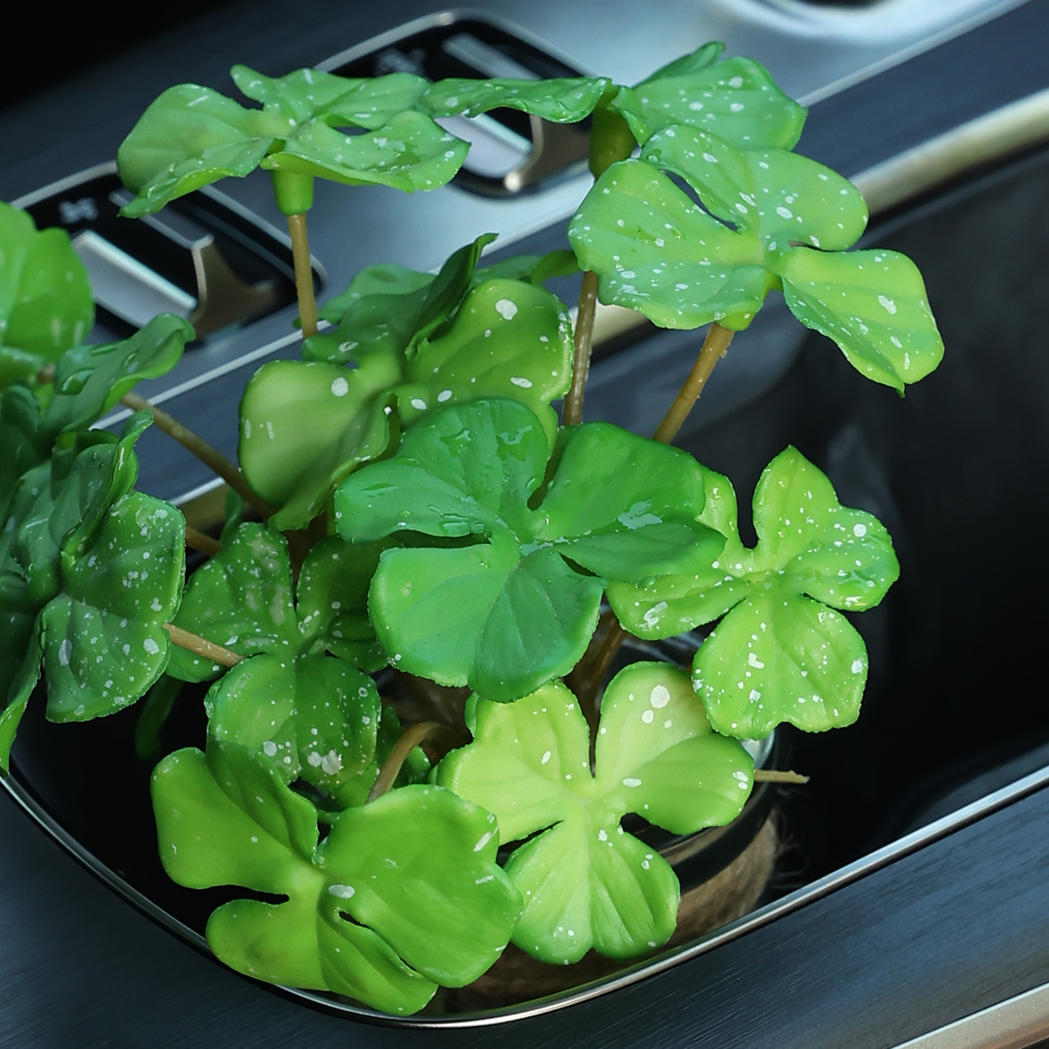 手感三叶草仿真绿植小盆栽假花高级感汽车车载中控摆件车内装饰品