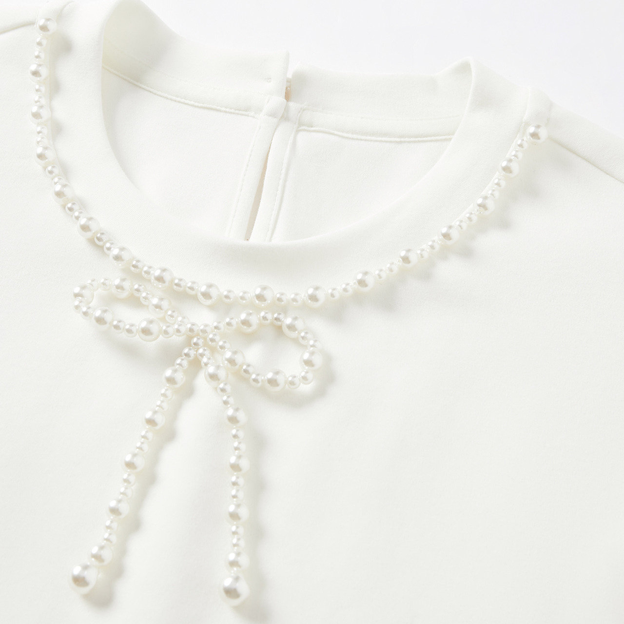 简约风珠饰领口短袖T恤