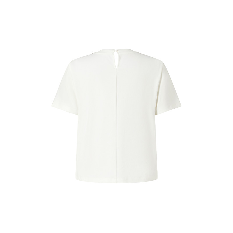 商场同款 摩萨克秋款混纺基础简约珠饰领口短袖T恤女