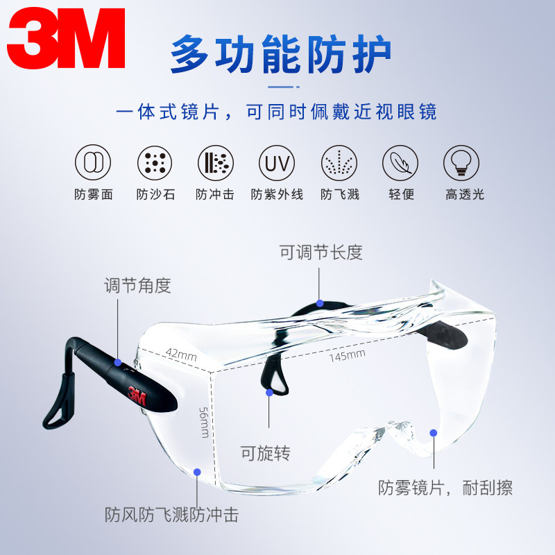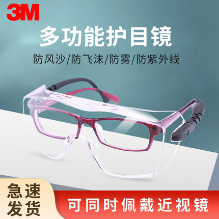 3m护目镜劳保防飞溅可戴眼镜摩托车骑行防风沙防虫防护眼镜男女