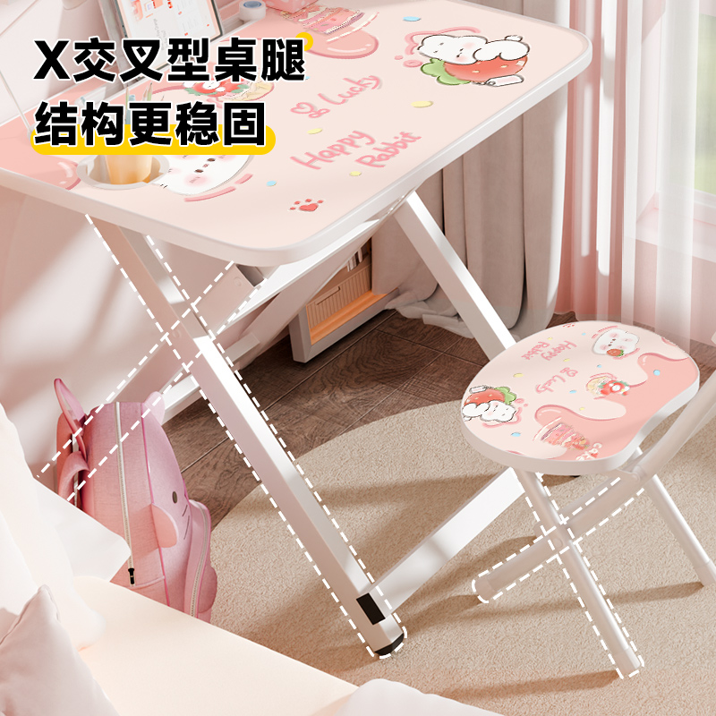 可爱粉色兔子儿童学习桌小学生家用写字书桌可折叠免安装桌椅套餐