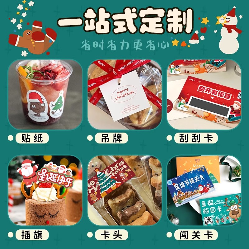 圣诞节贺卡定制平安夜吊牌鲜花礼盒祝福卡蛋糕甜品伴手礼装饰卡片