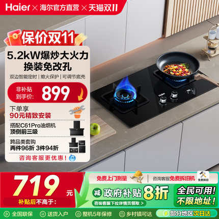 海尔Q2BE7猛火定时嵌入台式天燃气煤气灶双灶家用炉灶具官方旗舰