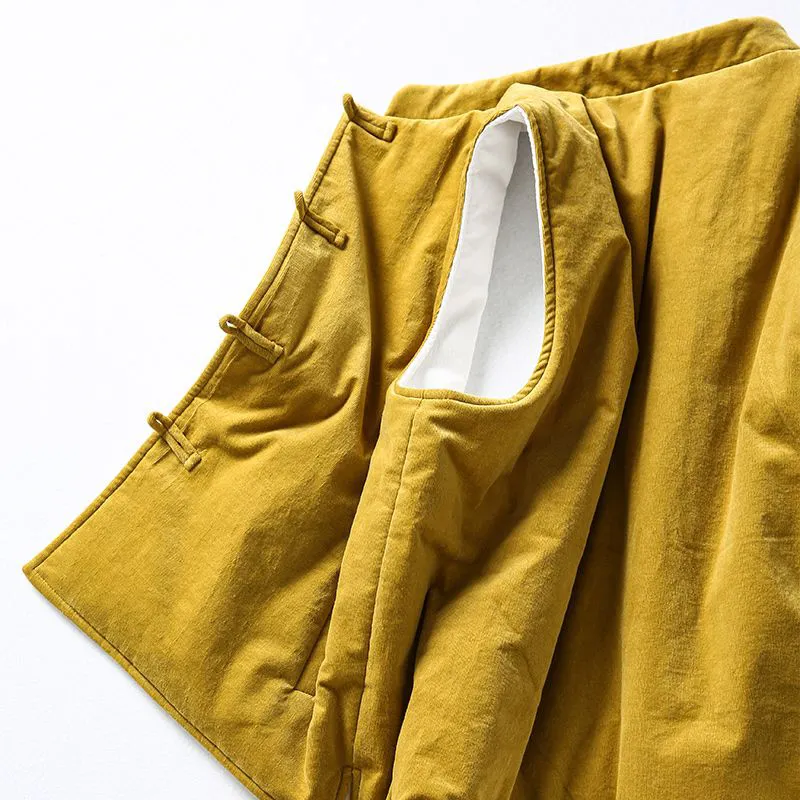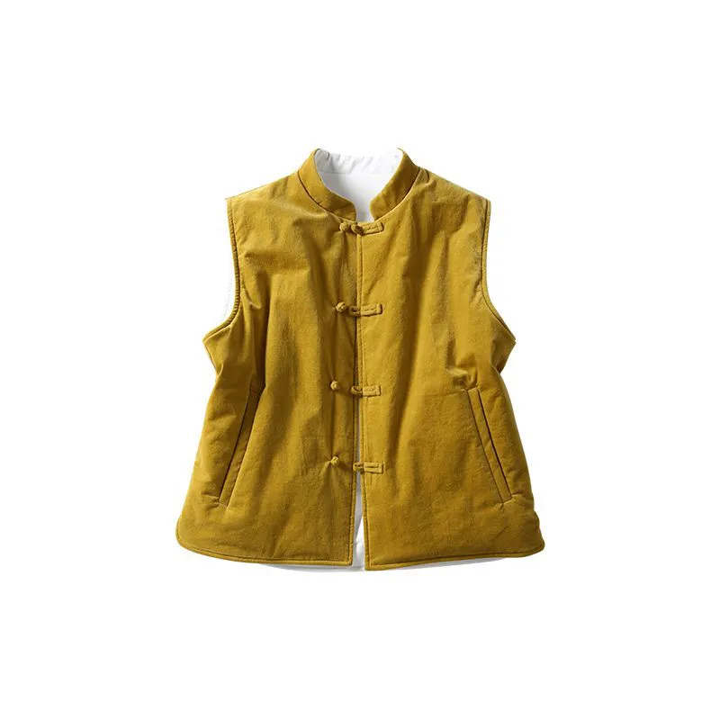 双面穿灯芯绒马甲短外套女秋冬中式盘扣加厚保暖无袖坎肩外搭上衣