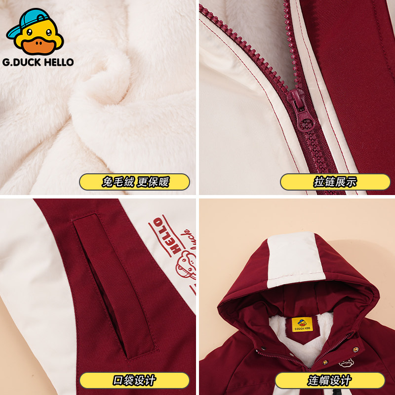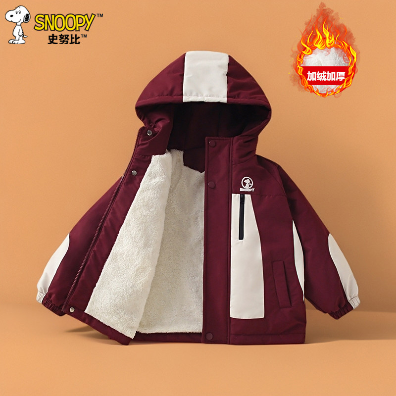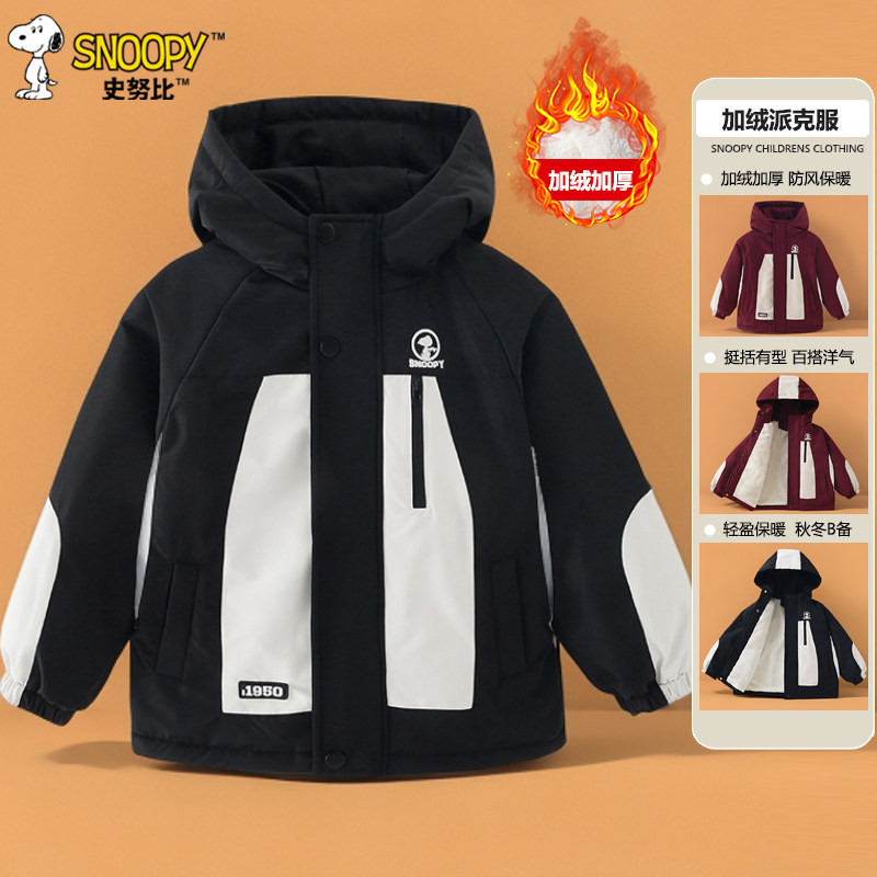 正品史努比童装男童加绒派克服女童秋冬装中大童加厚外套工装风衣
