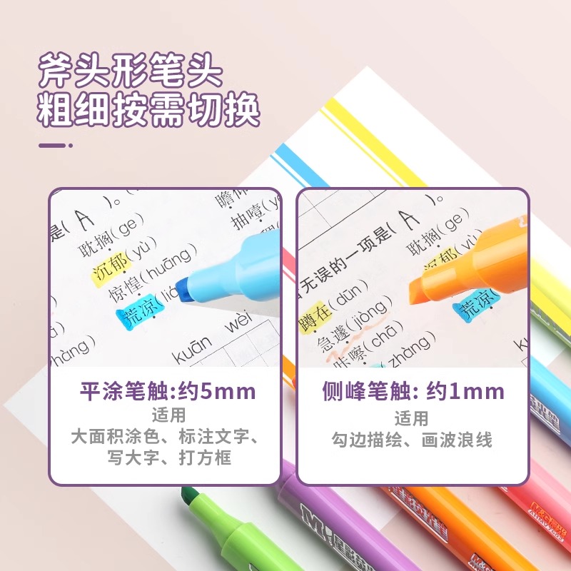 晨光荧光标记笔学生用记号笔彩色划重点轮廓笔学生用手帐笔莹光笔彩色大容量轮廓笔手账标记笔荧光笔高颜值