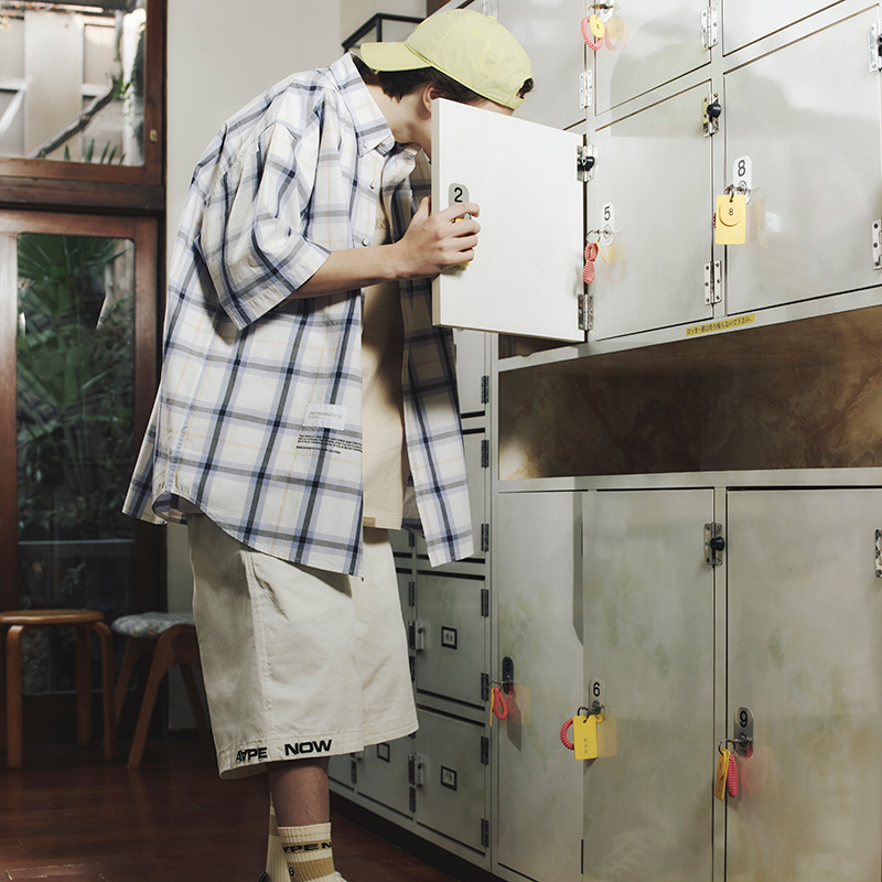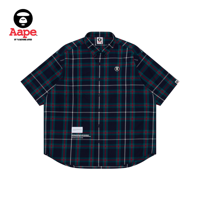 Aape旗舰男装春夏猿人徽章字母印花格纹简约休闲短袖衬衫8476XXM