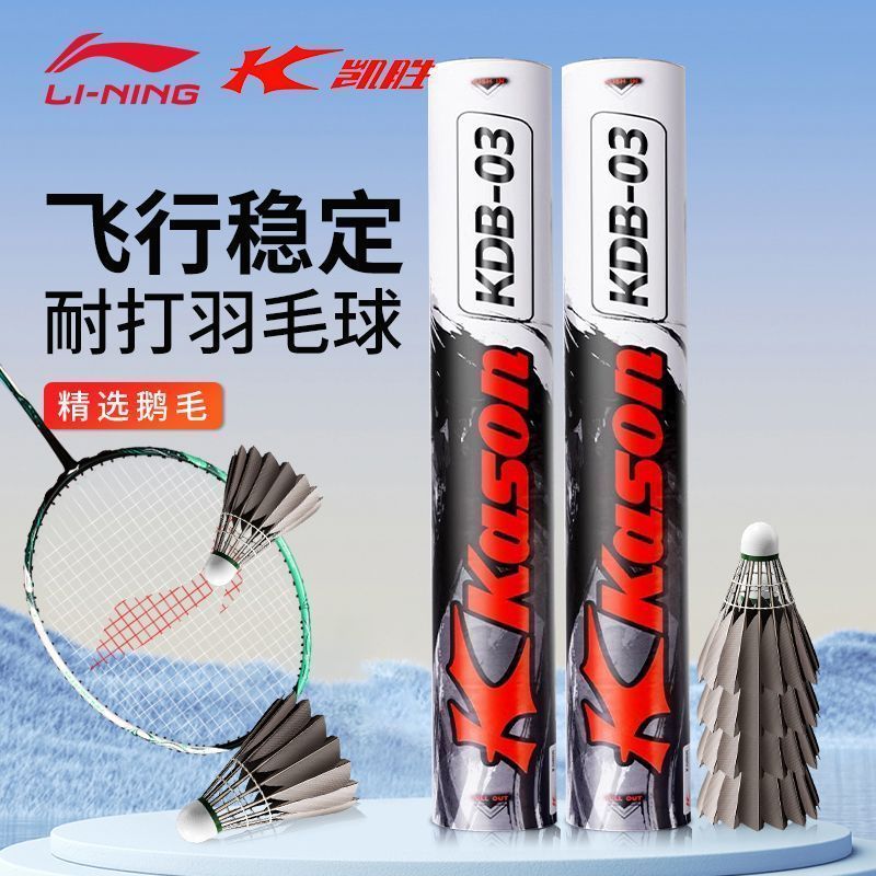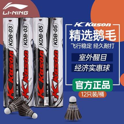 李宁凯胜羽毛球KDB03耐打正品耐用K2鹅毛专业级防风训练1桶黑羽球