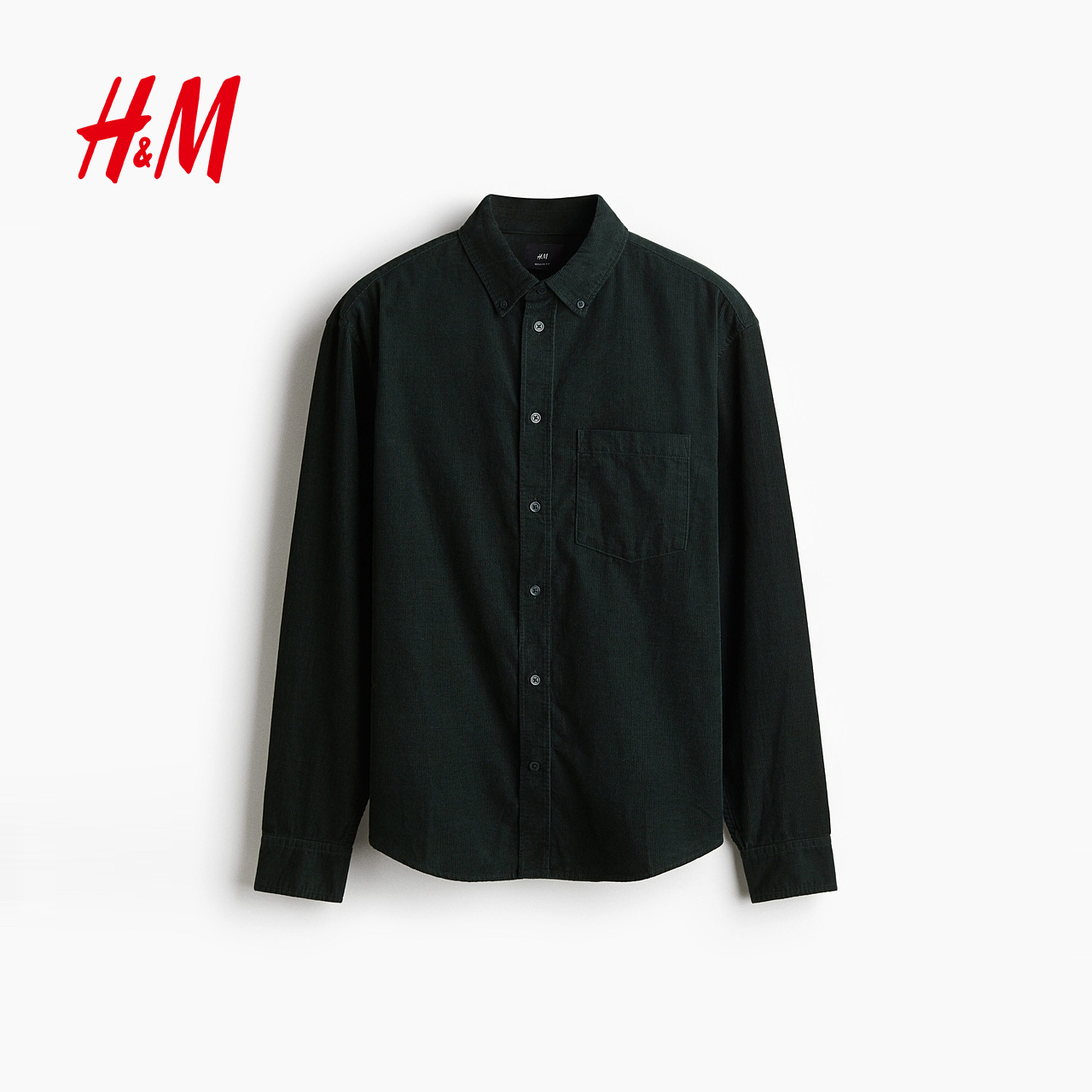 HM男装衬衫2025年秋季新款标准版型薄外套柔软灯芯绒衬衣1289456