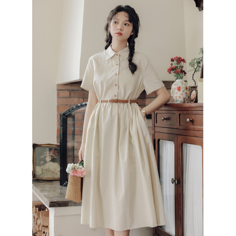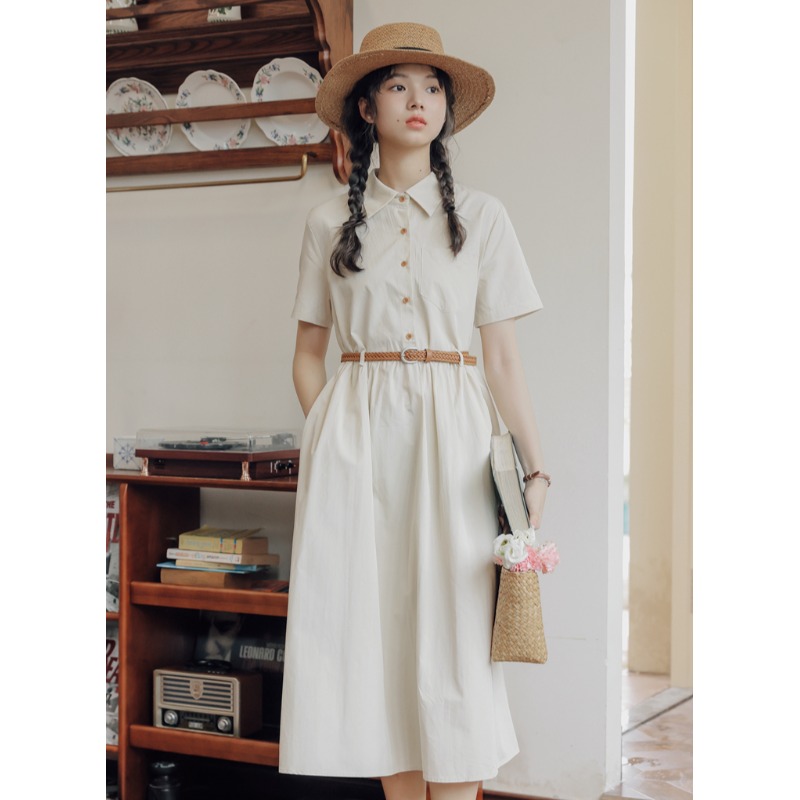 学院风小清新短袖衬衫连衣裙女夏2025新款温柔a字裙收腰显瘦裙子