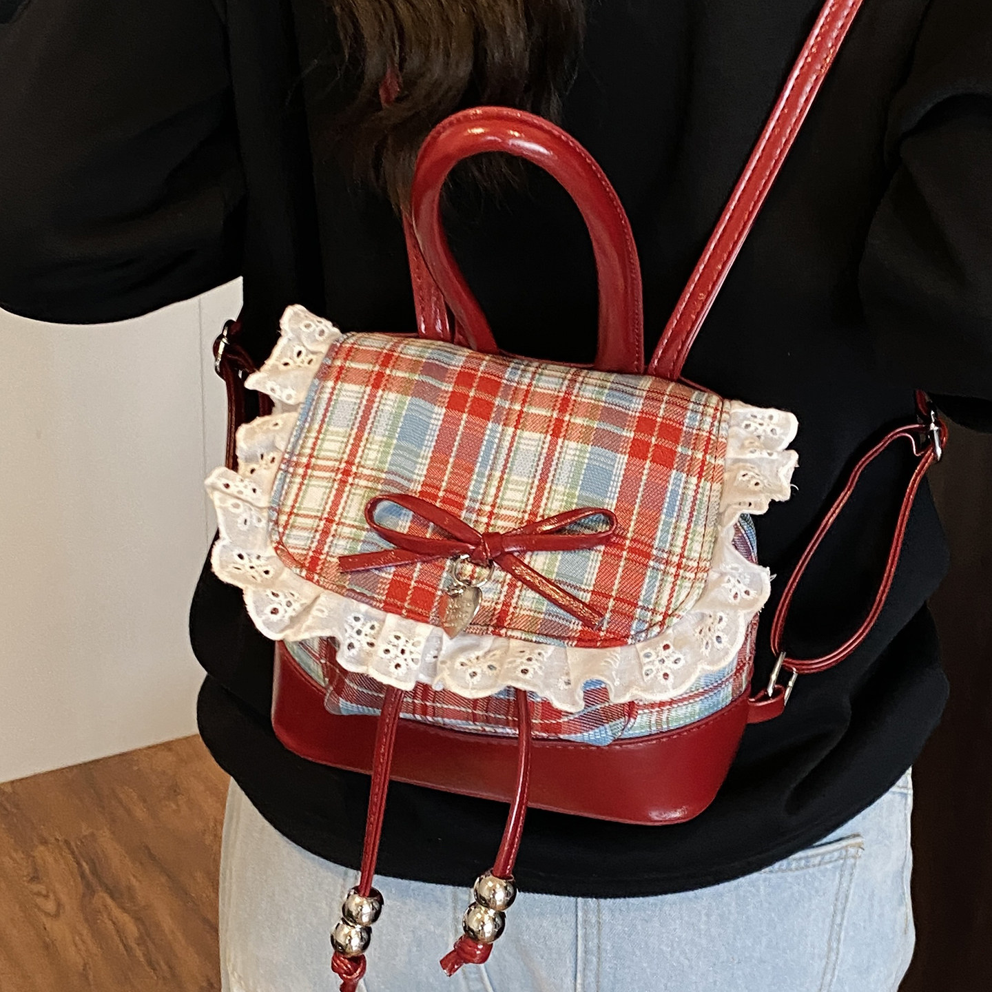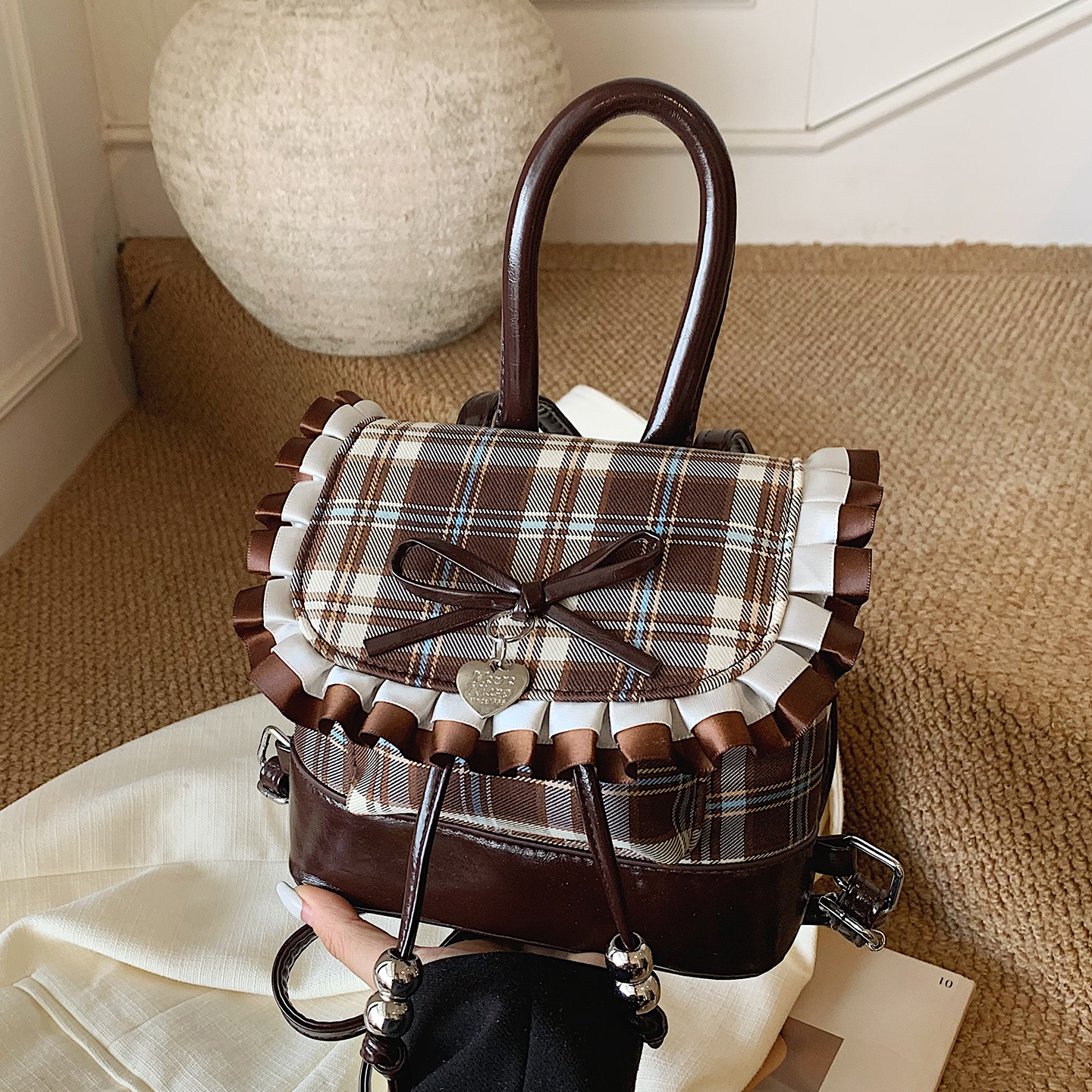 小众设计甜美风双肩包女2026新款秋季时尚复古格纹学生背包通勤包