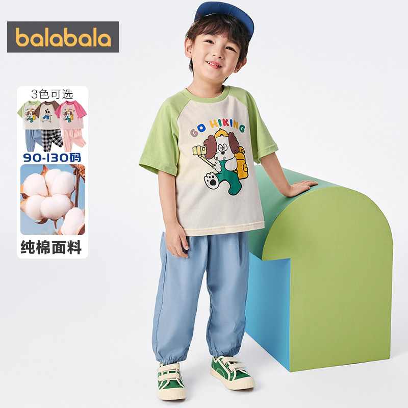 巴拉巴拉儿童运动套装男童女童纯棉t恤夏季新款童装宝宝裤子衣服5