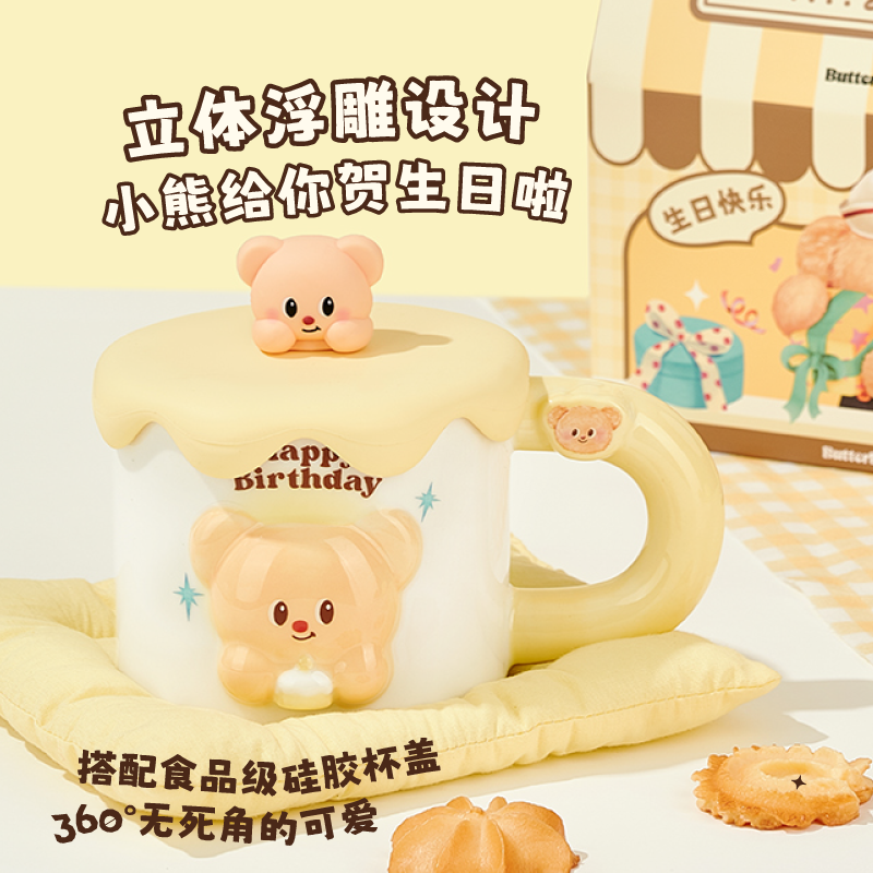 言仓黄油小熊联名马克杯喝水杯子高颜值办公室陶瓷新年生日礼物
