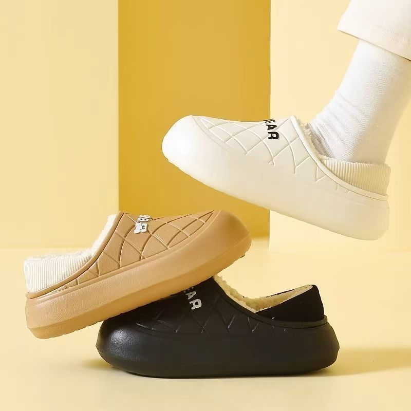情侣棉拖鞋女包跟室内韩版厚底踩屎感拖鞋男冬季加绒保暖棉鞋外穿
