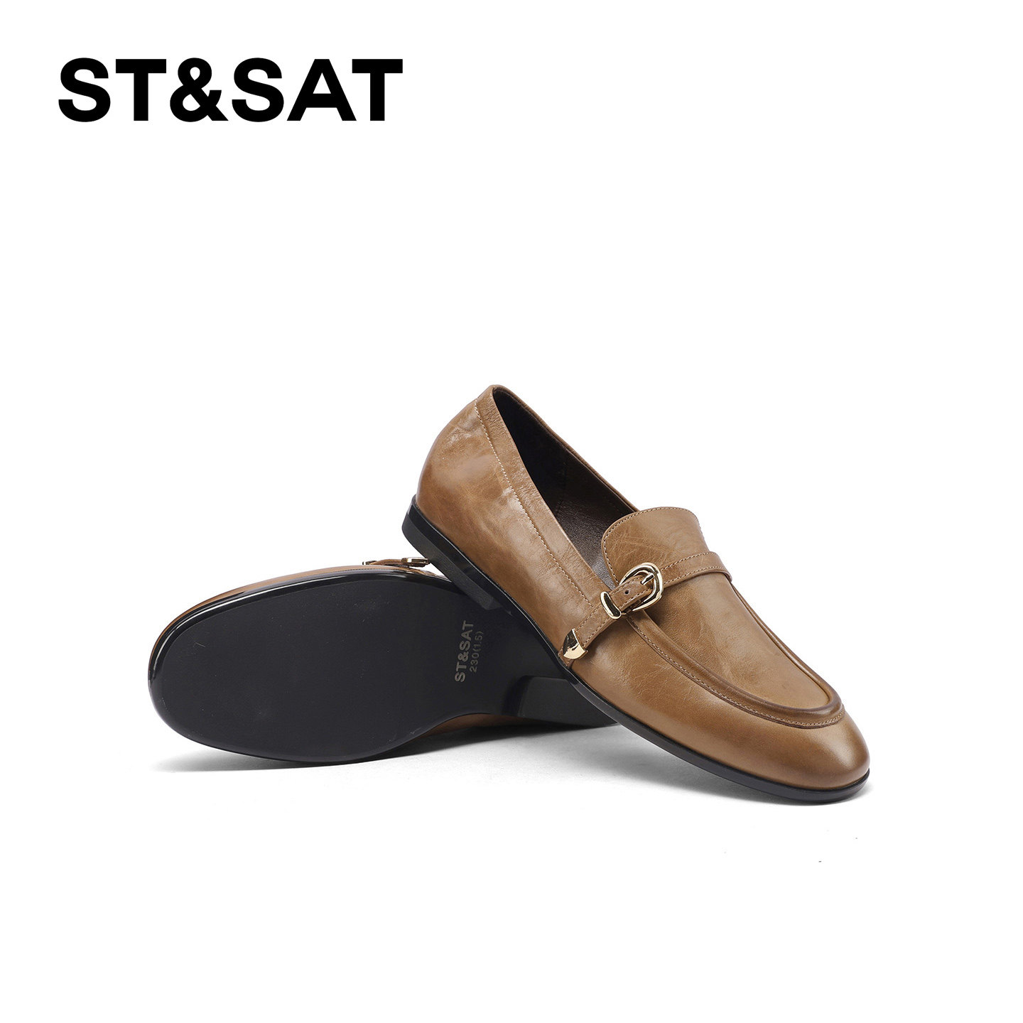 St&Sat/星期六纯色低跟乐福鞋春季气质舒适单鞋复古圆头浅口女鞋