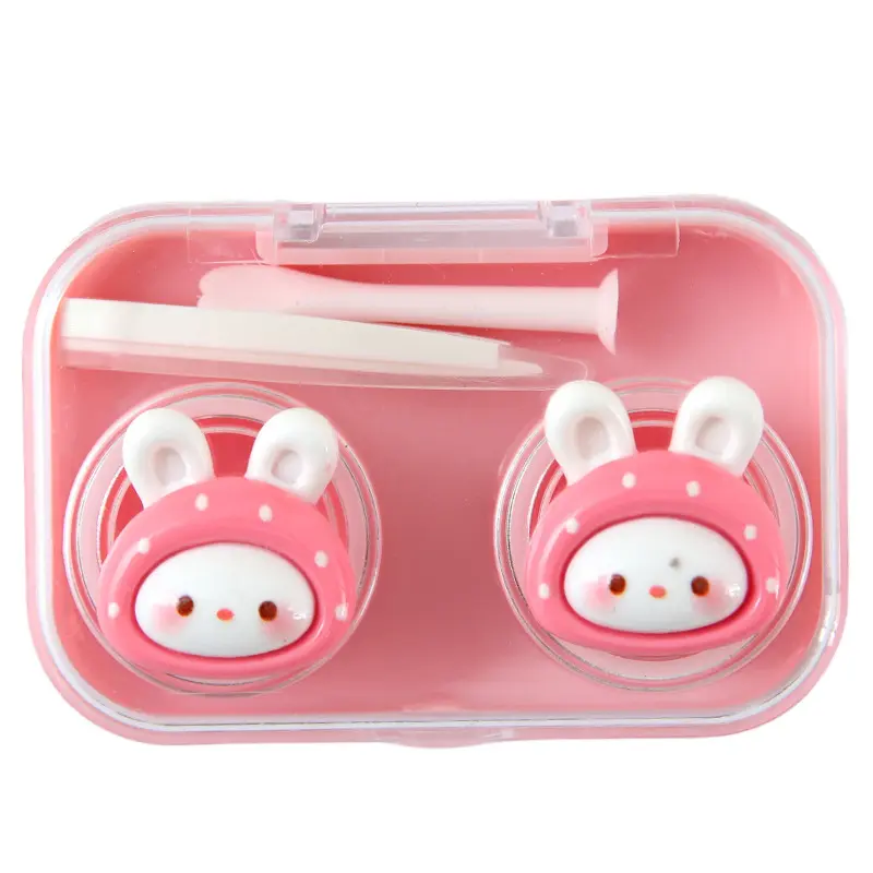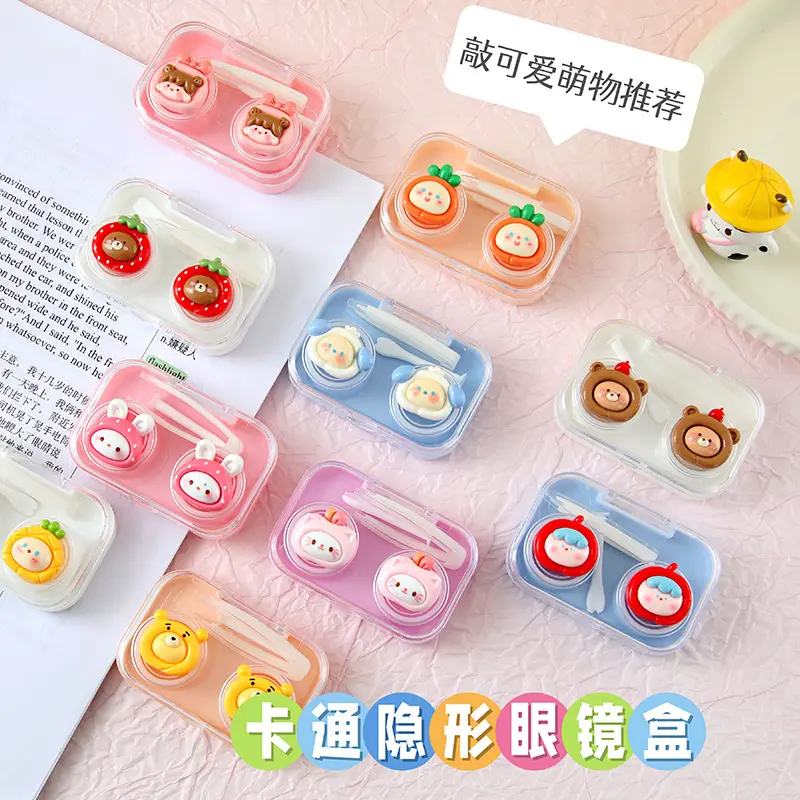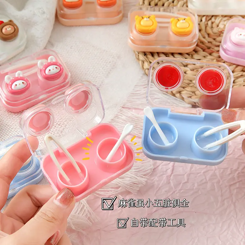 可爱卡通隐形眼镜盒心伴侣盒透明小巧美瞳盒一体式免拧盖