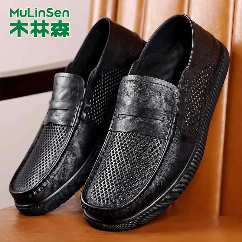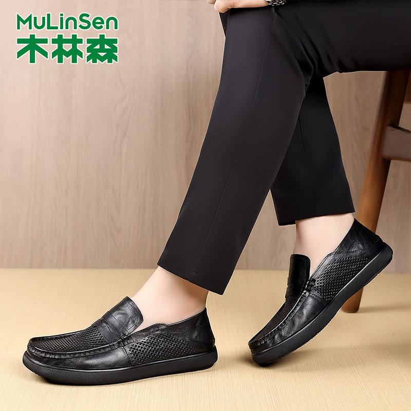 木林森男鞋2025新款春秋季透气软底豆豆鞋子男士百搭休闲一脚蹬鞋