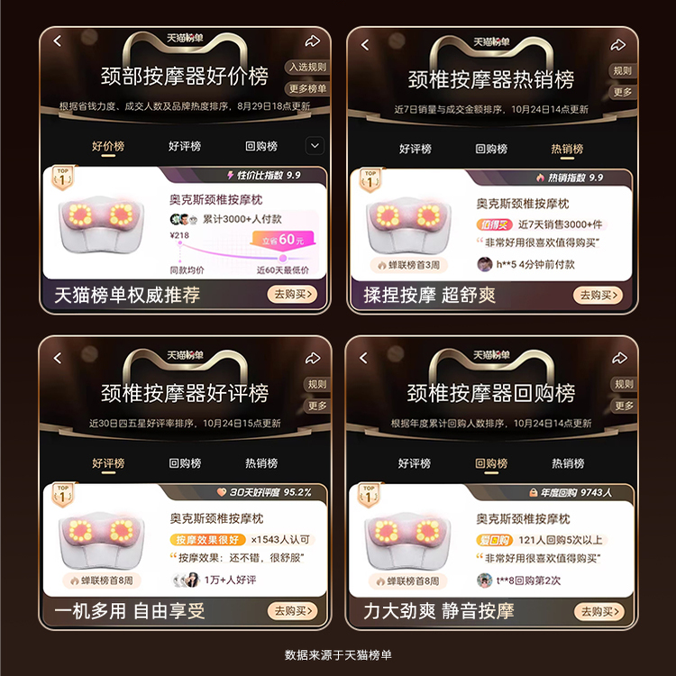 奥克斯颈椎按摩器腰部背部多功能按摩枕靠垫脖子揉捏肩颈部按摩仪