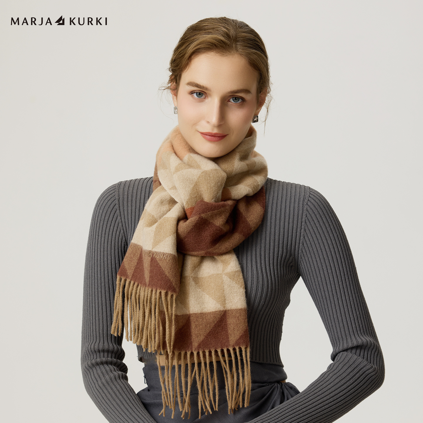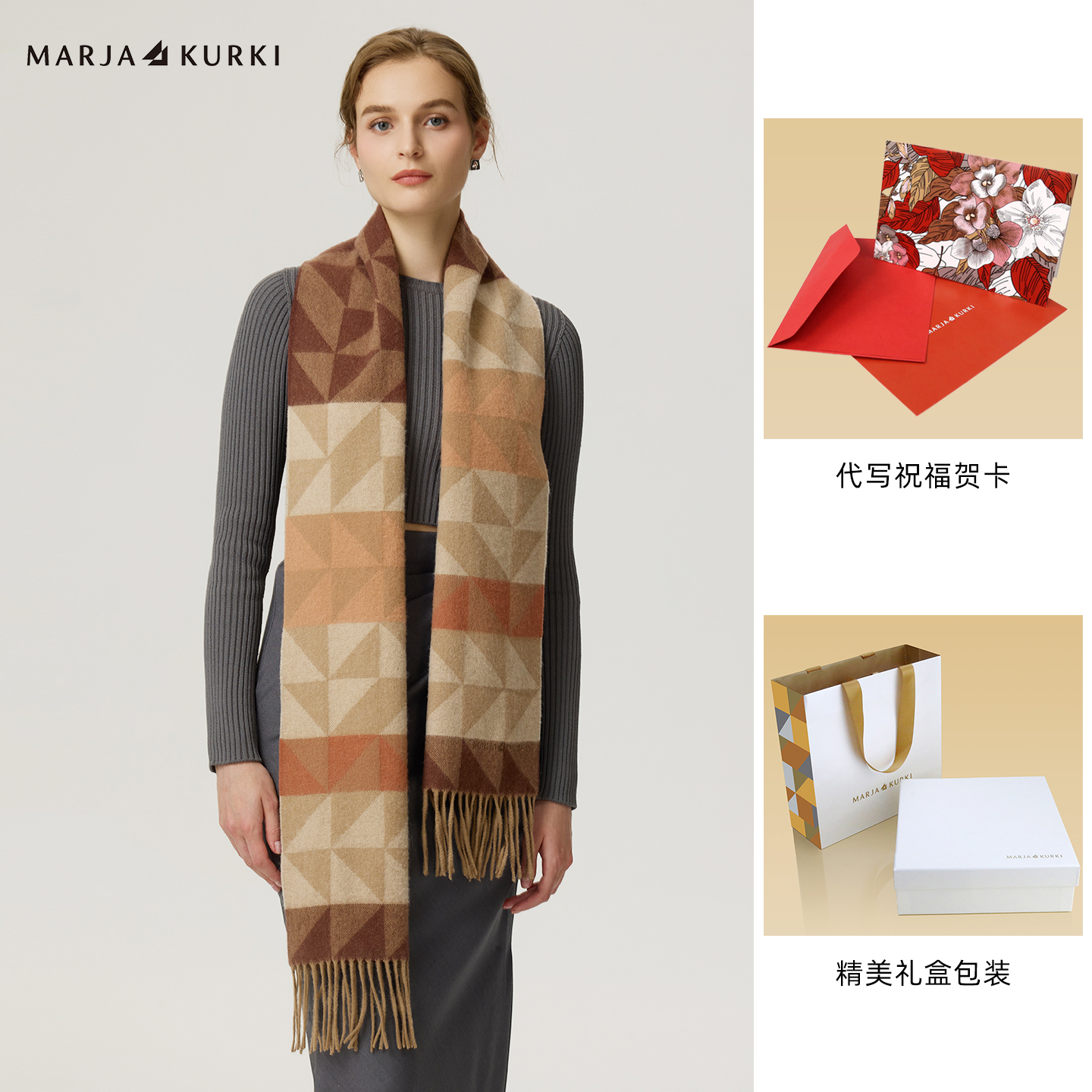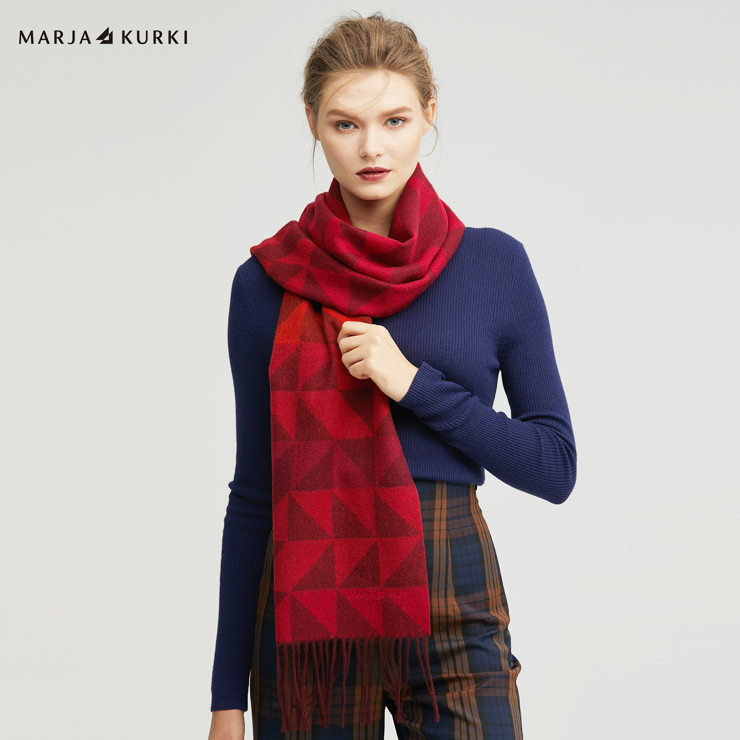 MARJAKURKI玛丽亚古琦红色格子羊毛围巾女冬季本命年新年圣诞礼物