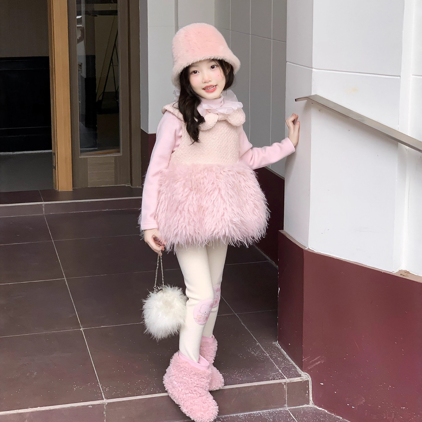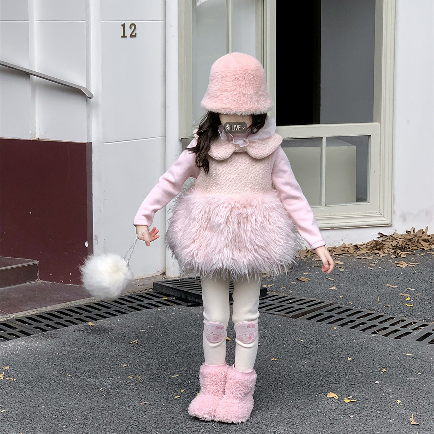 女童连衣裙秋冬装新款洋气女宝宝公主裙加绒套装夹棉儿童裙子冬季