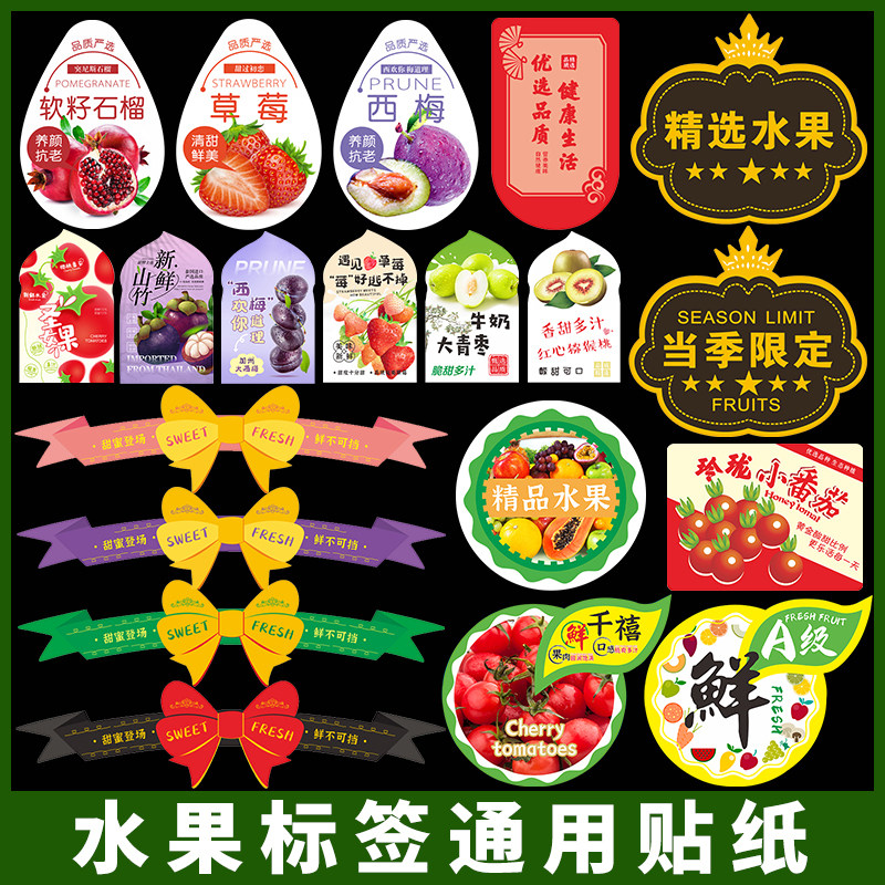 通用水果标签贴纸不干胶防水精品果标贴纸草莓车厘子果盒商标贴