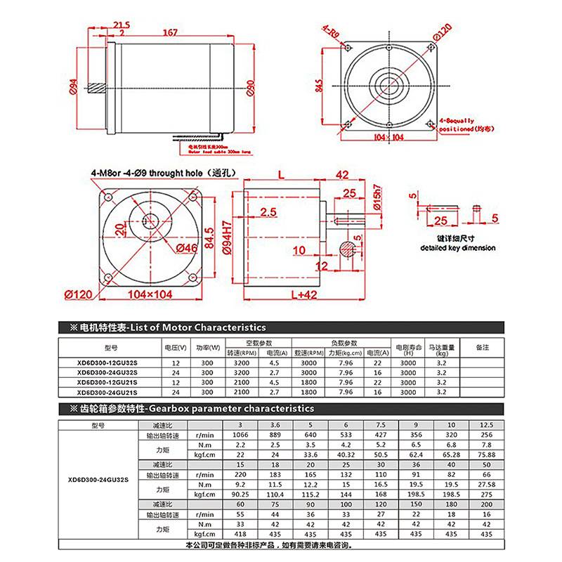 信达300W减速电机12V可调速大功率力矩电动机24v直流齿轮低速马达